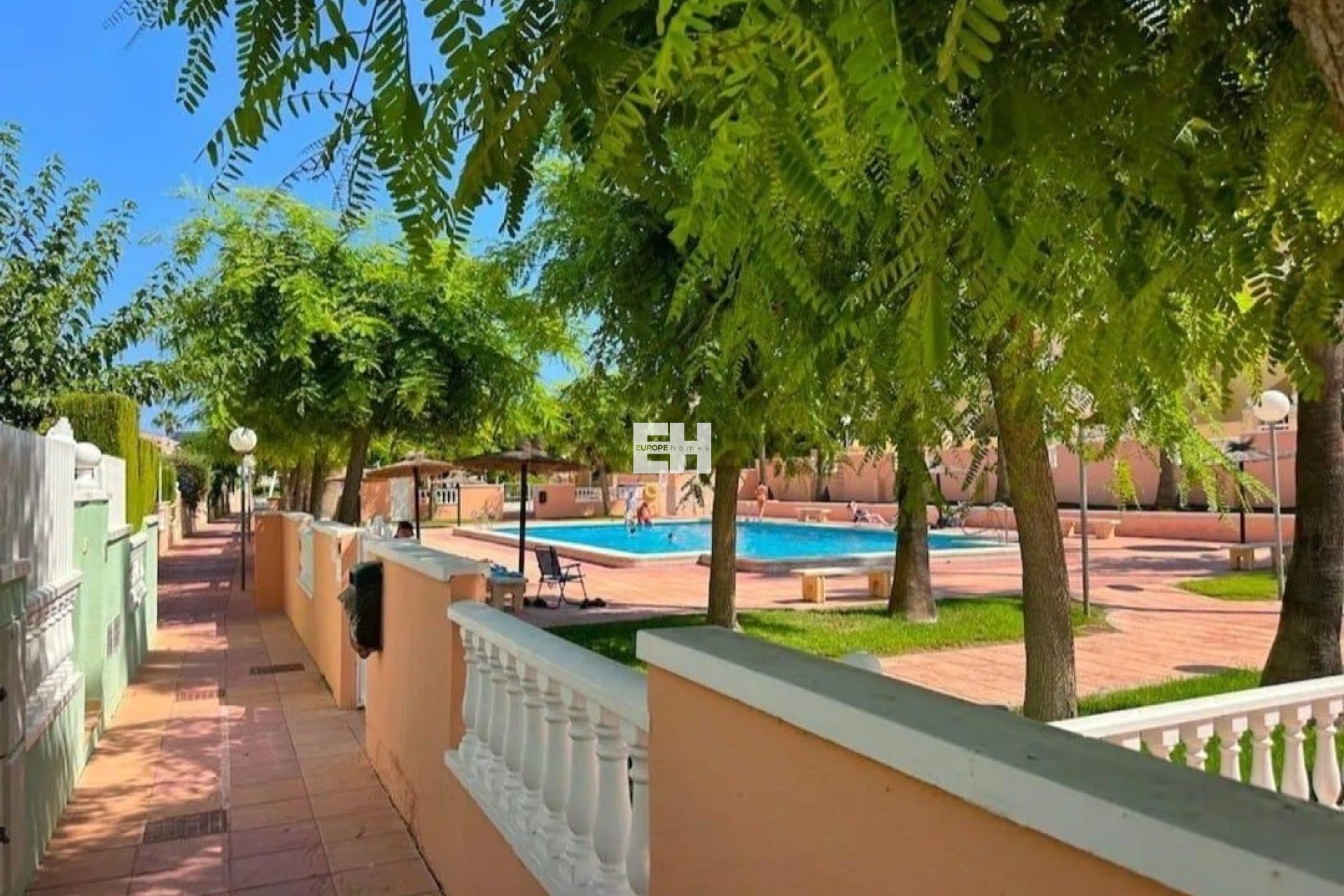 Discover this charming townhouse in the privileged area of Gran Alacant, ideal for enjoying the Mediterranean lifestyle. With a constructed area of 60 m² and recently renovated, this property features two cozy double bedrooms that offer comfort and tranquility. The exterior stands out for its large 38 m² private terrace, perfect for relaxing or hosting outdoor gatherings. You'll also have access to a private solarium where you can enjoy the wonderful local climate. The community offers various amenities such as a communal pool, tennis court, and playground; ideal for both families and those seeking a recreational environment. Just 1 km from the Mediterranean Sea, you'll have the best beaches within reach while also enjoying proximity to public buses, shopping centers, and educational institutions. This townhouse is attractive not only for its interior features but also for its exterior: it is located within a well-maintained residential area surrounded by trees that bring fresh air to the fenced urban environment.