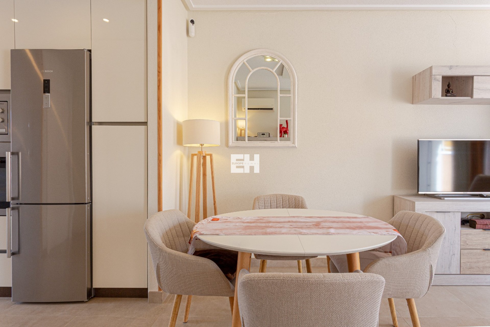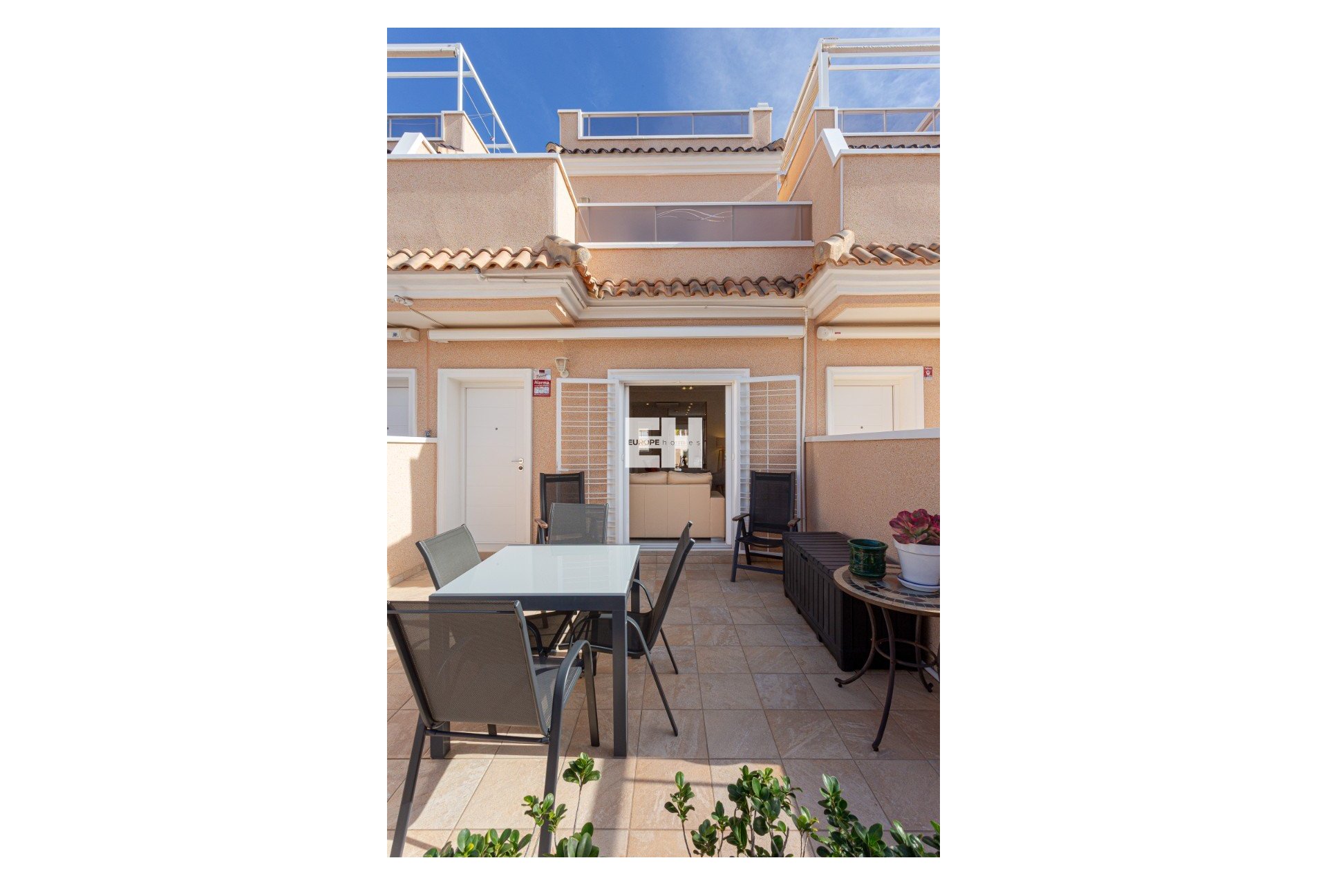 Townhouse for sale in Orihuela Costa, located in the well-established residential area of Lomas de Cabo Roig, in the south of the Costa Blanca. This property is set in a quiet environment, yet very close to all services, beaches and golf courses, making it ideal for permanent living, holidays or investment.The property offers 3 bedrooms and 2 bathrooms and is sold fully furnished and equipped, including Bosch appliances. It features underfloor heating in the bathrooms and living room, as well as multiple outdoor spaces to enjoy the Mediterranean climate all year round.The townhouse is distributed over two levels and benefits from generous terraces, a private solarium and modern comfort features throughout the home.Lomas de Cabo Roig is a highly sought-after residential area of Orihuela Costa, known for its proximity to the beaches of Campoamor, its excellent access to golf courses and its wide range of nearby services.This townhouse is ideally located close to beaches, golf courses, shopping centres and all essential amenities, making it a solid option for both private use and rental investment.Prime location in Lomas de Cabo Roig, Orihuela CostaThis townhouse is located in Lomas de Cabo Roig, a consolidated residential area close to the beaches of Campoamor, Cabo Roig and La Zenia, as well as several renowned golf courses such as Campoamor Golf, Las Ramblas and Villamartín Golf.The area offers excellent infrastructure, a peaceful residential atmosphere and quick access to all daily services, making it one of the most attractive locations in Orihuela Costa.Townhouse with terraces and functional layoutOn the ground floor, the property features two spacious terraces, one at the front entrance and another at the rear of the house, both ideal for outdoor dining, relaxing or entertaining.This level also includes a bright living-dining area with underfloor heating, a fully equipped kitchen with Bosch appliances, and a bedroom of 8.6 m² with built-in wardrobe and air conditioning by split unit. The ground floor is equipped with infrared heating for added comfort.First floor with bedrooms, bathroom and terraceThe first floor offers a spacious bathroom with bathtub, radiator heating and natural light through a window. There is a second bedroom of 8 m² with built-in wardrobe, as well as a main bedroom of 10.1 m² with air conditioning and direct access to a private terrace of 9.1 m².From this terrace, stairs lead up to a private solarium of approximately 30 m², providing an excellent outdoor space to enjoy the sun, create a chill-out area or install sun loungers.Close to beaches, golf and shopping centresThe property is just a short drive from the beaches of Campoamor and Cabo Roig, offering fine sandy beaches and clear waters. Several top golf courses are also nearby, making this area especially popular with golf enthusiasts.Supermarkets, restaurants, bars and pharmacies are all within easy reach, while the popular :contentReference[oaicite:0]{index=0} shopping centre is only a few minutes away by car.An ideal property for living or investmentThanks to its location, outdoor spaces and full equipment, this townhouse in Lomas de Cabo Roig is perfect as a permanent residence, holiday home or high-demand rental investment in Orihuela Costa.Properties in this area continue to show strong demand and long-term value, making this home a safe and attractive investment on the Costa Blanca South.