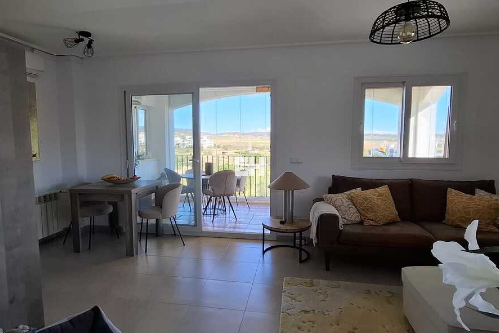 This well presented second floor corner apartment has glass curtain on the large main terrace with stunning views over the resort.The curevd wall design means this apartment has a large kitchen which has been upgraded. The bathroom has a window and been modernised with a walk in shower.Both bedrooms have wardrobes and patio doors leading the back terraces.The property has air-conditioning in the living room for summer and central heating for the cooler winter months. There is private underground parking and storage, with an elevator to all levels. The apartment is being sold furnished minus personal possessions. It would make an excellent holiday home or suitable for permanent living.The first thing that impresses you about Hacienda Riquelme Golf Resort is the wide-open spaces, the extensive gardens and the low-density construction, which create a relaxing environment to enjoy a very safe and peaceful life or holiday. The apartments are set out spaciously around the magnificent and challenging 18 hole golf course part of the Jack Nicklaus Golf Trail. In the heart of the resort you will find the beautiful renovated Hacienda where you will find a supermarket, clubhouse, restaurant and bar. The inner court yard becomes the hive of entertainment in the Summer, whilst the large terrace set in the stunning gardens is open all year for “al fesco” dining and drinking.Facilities:Gated Community.24 hour security."El Cason" Bar, Restaurant, Clubhouse. "Sips" Coffee ShopSupermarket.Summer Entertainment.19 large community swimming pools.Communal gardens.Trees, 5 lakes.Wild flowers & local wildlife.Driving range & Golf ShopTennis courts.Paddle tennis courts.Football / Basketball court.Outside gym area.Children's play areas.Hacienda Riquelme is very well connected by the main motorways. Murcia Airport (20 mins)Mar Menor beaches (15 mins)Mediterranean beaches (20 mins)For those who like historical buildings, architecture or a desire to shop, the lovely cities of Murcia and Cartagena provide plenty of entertainment. Murcia (30 mins)Cartagena (45 mins) Murcia Airport (20 mins)Near to the bustling popular village of Sucina with shops, restaurants, bars, chemist, supermarket and lots more (5 minutes)For more information on the apartments available please contact us.