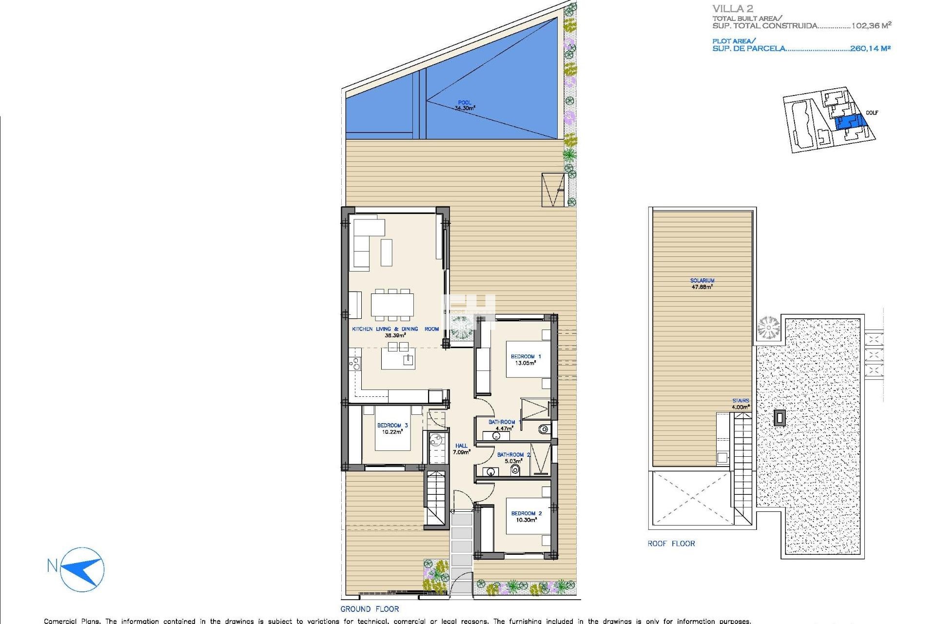 Le complexe comprend 13 appartements contemporains de 2, 3 ou 4 chambres et 4 villas exclusives de plain-pied en première ligne de golf, avec 3 chambres. Chaque propriété allie un design moderne à des finitions de haute qualité et des agencements fonctionnels. Les villas disposent de terrains privés avec jardins et piscines, et peuvent être équipées d'un solarium privé pour une touche de luxe supplémentaire. Toutes les maisons bénéficient d'une vue imprenable sur le terrain de golf et la Mar Menor.