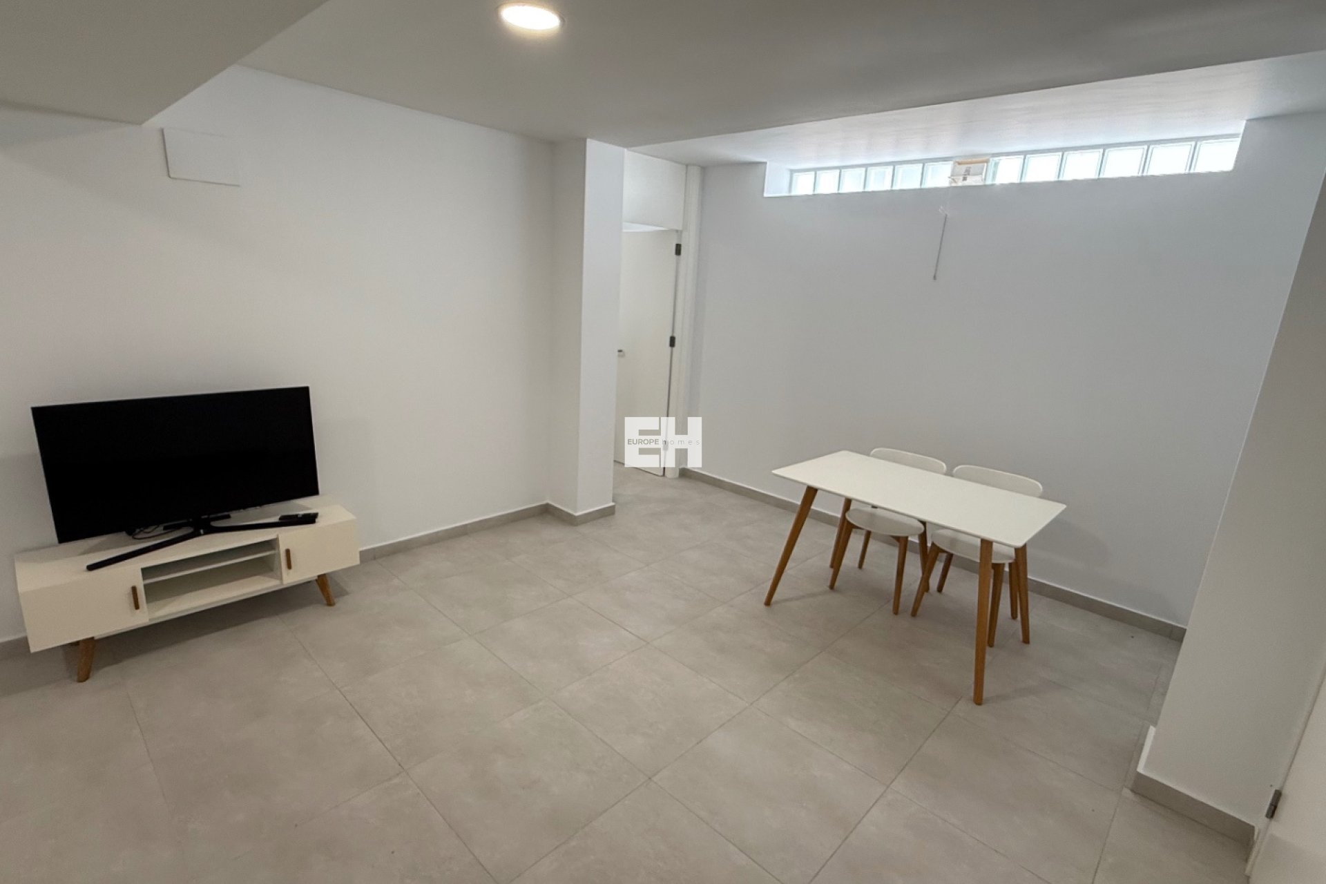 Rez-de-chaussée : salon lumineux, cuisine entièrement équipée, une chambre et une salle de bain.