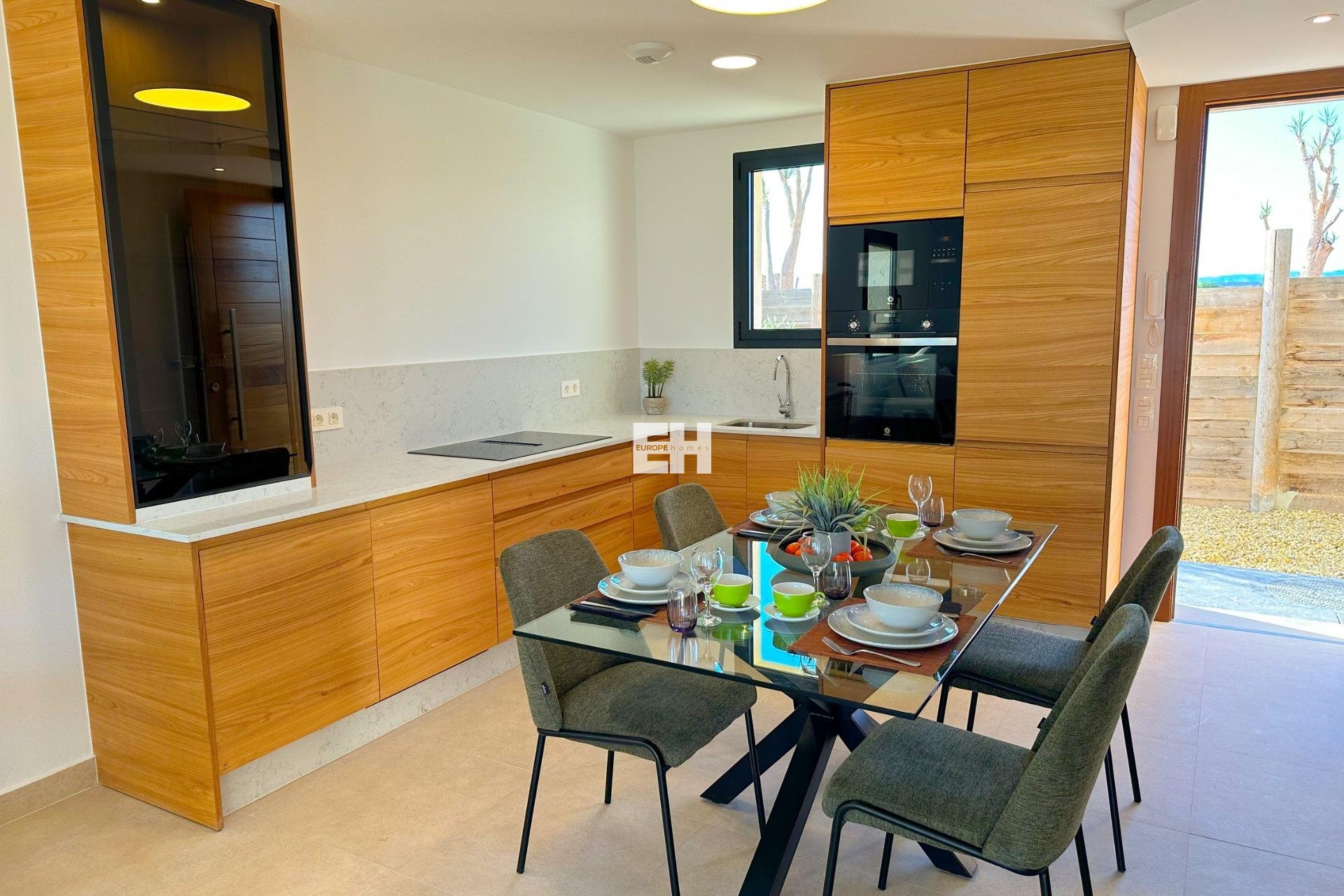 De afwerking is van hoge kwaliteit: een mooi betegelde badkamer en doucheruimte. Een open keuken met 'Silestone' werkbladen, met de koelkast/vriezer en wasmachine geïntegreerd in de kasten. Een keramische kookplaat, afzuigkap en magnetron. Airconditioning, dubbele beglazing, spiegelkasten in de slaapkamers en sanitair van hoge kwaliteit 'Roca' of 'Porcelnosa'.