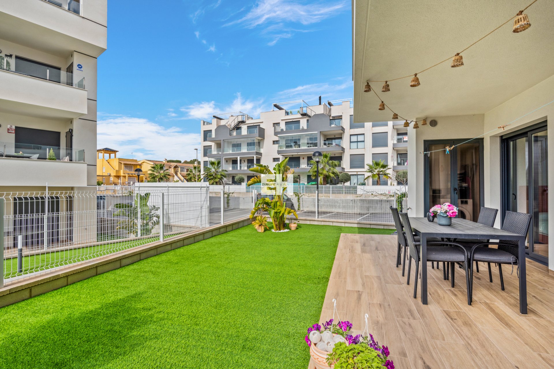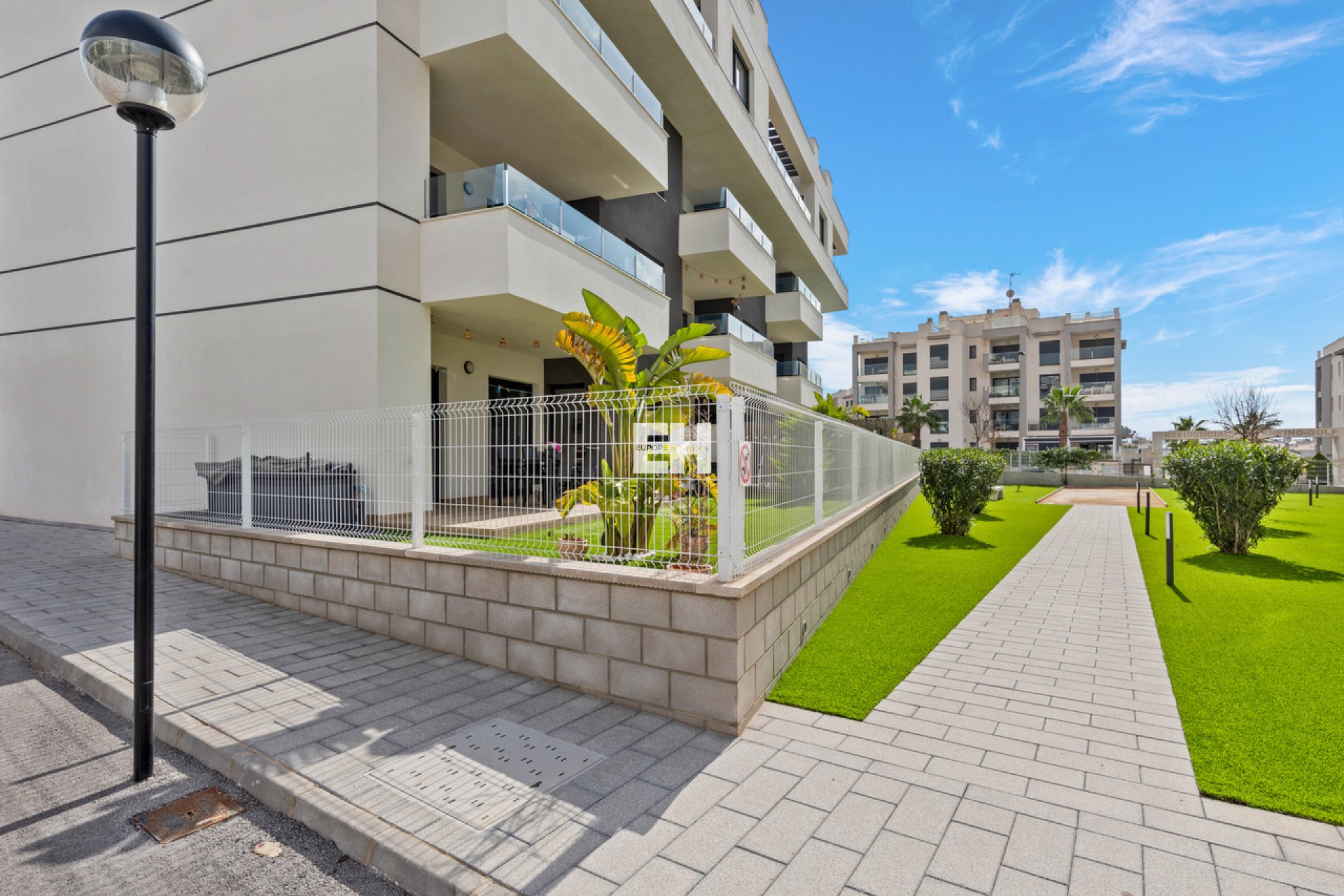 Dit modern gelijkvloers hoekappartement met 2 slaapkamers en 2 badkamers is gesitueerd in Villamartin, Alicante, op een geweldige locatie en op slechts een paar minuten wandelen naar alle lokale voorzieningen (restaurants, bars en winkels). Het fantastische strand van La Zenia en het populaire winkelcentrum La Zenia Boulevard zijn ook op minder dan 10 minuten rijden. Villamartin Plaza en Villamartin Golf zijn op minder dan 4 minuten te bereiken.De woning bestaat uit een ruime woonkamer/eetkamer, een moderne open keuken in U-vorm, elektrische rolluiken, airconditioning (koeling/verwarming), een grote slaapkamer met garderobe en een en-suite badkamer, een tweede slaapkamer met garderobe en een extra badkamer met inloopdouche. Via de schuifdeuren komt u op het terras (met kleine berging) terecht waar u de hele dag van de zon kunt genieten. Er is tevens een privé parkeerplaats inbegrepen in de prijs. Op het domein zijn mooie gemeenschappelijke tuinen voorzien met zwembad, een petanquebaan, een kinderspeeltuin en een park om te ontspannen.Deze appartementen bieden een fantastische prijs-kwaliteitverhouding en de locatie is echt geweldig met alle bars, restaurants en alle andere voorzieningen op wandelafstand.Het Villamartin-gebied is erg populair bij toeristen en het grootste deel van de bevolking bestaat uit West-Europese expatgemeenschappen die zich er in de afgelopen 10 jaar hebben gevestigd, waardoor het dorp vrijwel is veranderd in een modern ogende stadje. Er zijn ook verschillende golfbanen in de buurt en talrijke witte zandstranden.