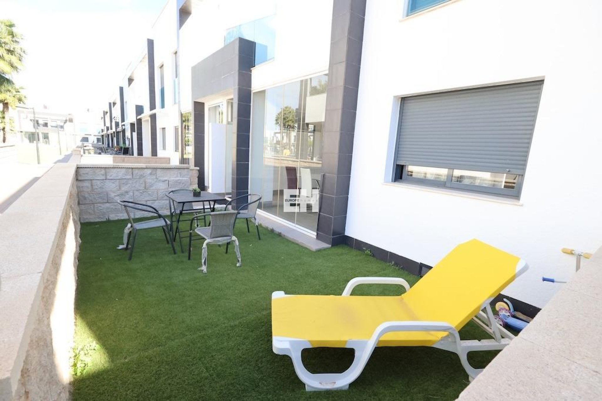 Gelijkvloerse bungalow met twee tuinen: één van 13 m2 met directe toegang tot het gemeenschappelijke zwembadgedeelte, en een andere van 6 m2 aan de achterzijde van de woning.De woning beschikt over 77 m2, verdeeld over 2 slaapkamers, 2 badkamers, een open keuken verbonden met de woon-eetkamer en een glazen terras.Wordt verkocht gemeubileerd en uitgerust met airconditioning. Een buitenparkeerplaats is inbegrepen.De residentie biedt ruime groengebieden, een kinderspeelplaats en ligt naast het winkelcentrum Zenia Boulevard.