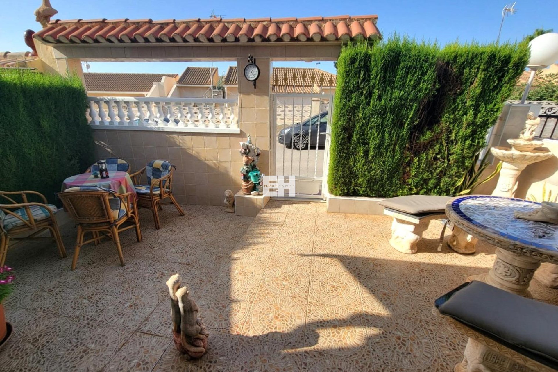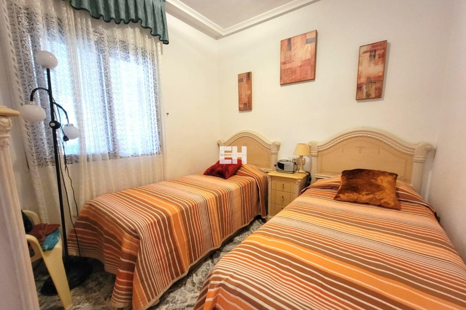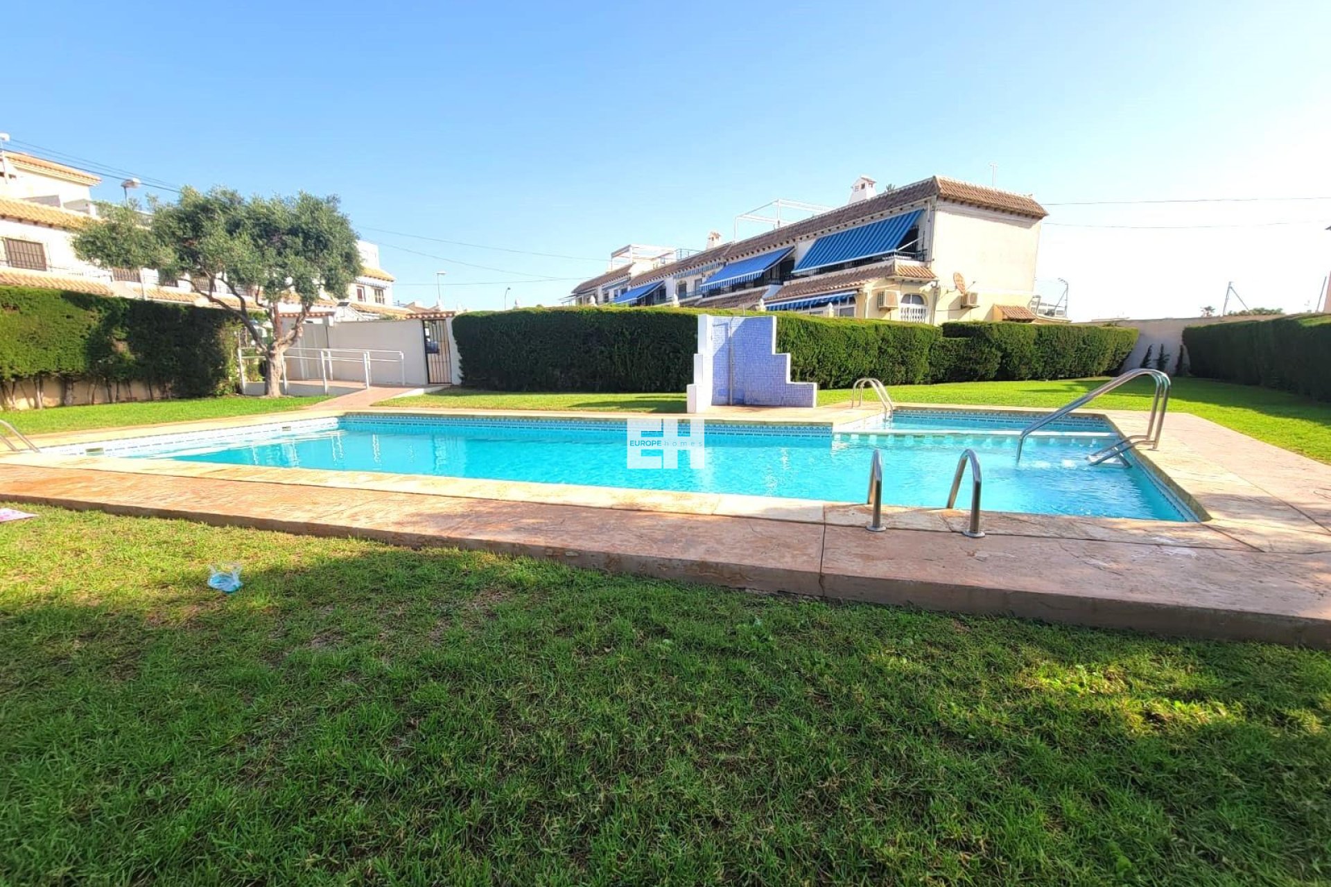 Precioso bungalow de planta baja, en muy buen estado, orientación Sur, con piscina comunitaria en Los Frutales. Dispone de una gran terraza delantera muy acogedora, un porche acristalado convertido en salón de Verano, un salón comedor, una cocina semi abierta totalmente equipada con acceso a un gran patio trasero, dos dormitorios dobles (dormitorio principal con cuarto de baño en-suite), dos cuartos de baño con duchas y dos trasteros. Amueblado. Aire acondicionado. Se puede aparcar el vehículo enfrente de la vivienda. Todo ello ubicado en un bonito Residencial cerrado con piscina y jardines a unos 20 minutos a pie de la Playa de Los Locos y del Parque de la Torre del Moro. Con todos los servicios, restaurantes, cafeterias, supermercados, paradas de autobús, etc..., a proximidad.