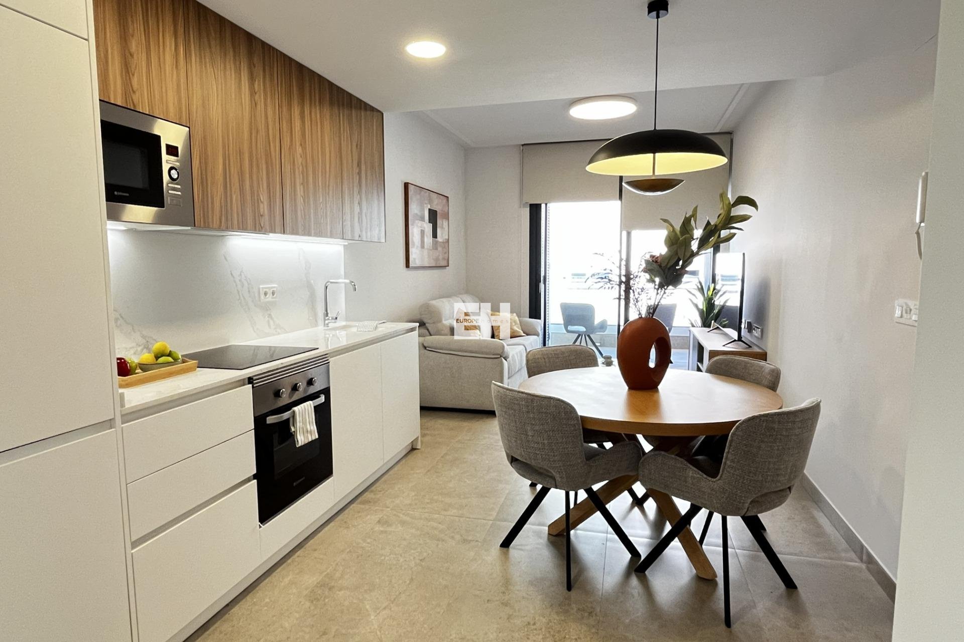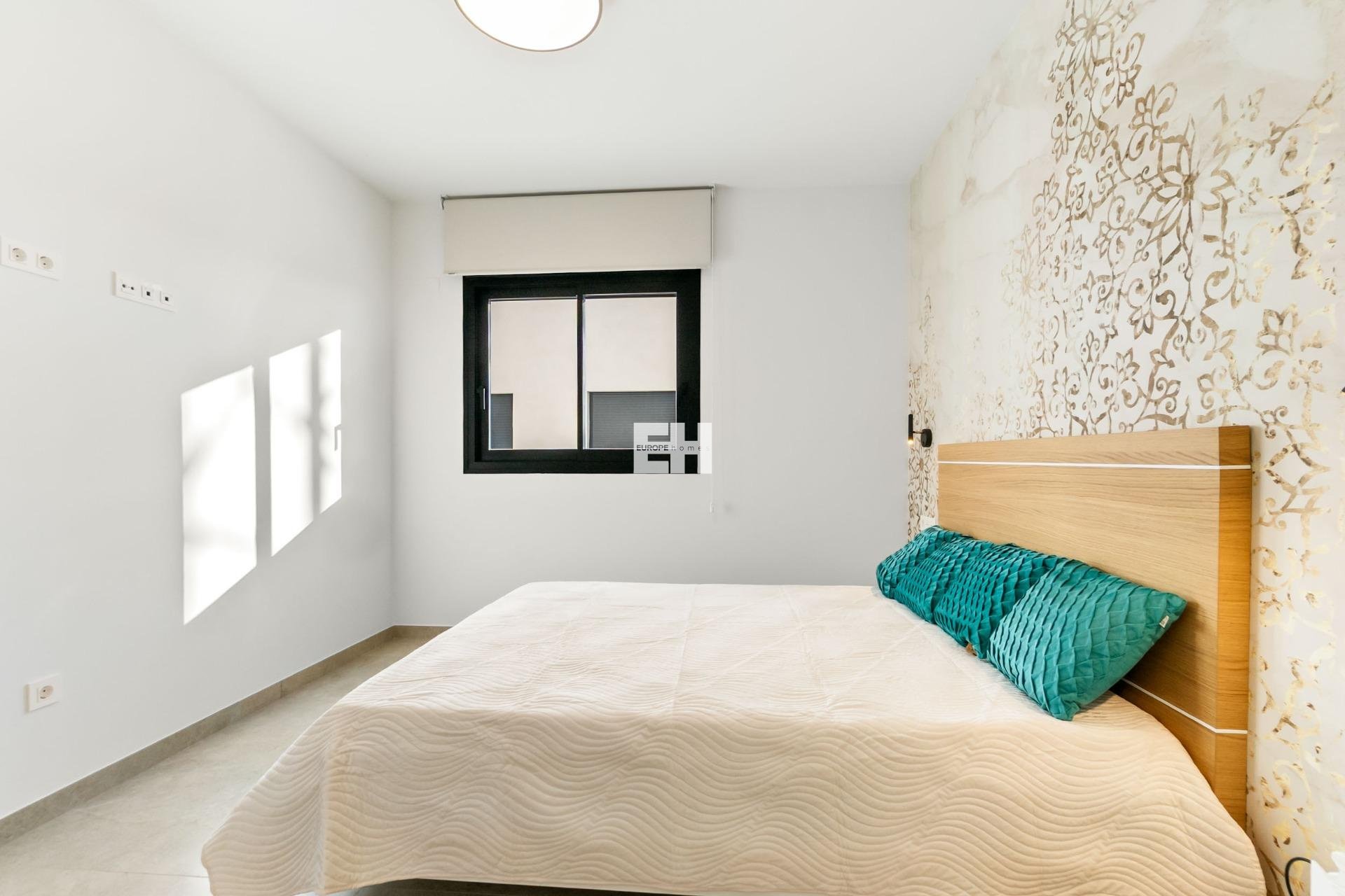 Este apartamento moderno de segunda mano ofrece una distribución funcional y luminosa en una zona práctica de Torrevieja. Consta de dos dormitorios, incluido el principal, y dos baños equipados con mamparas de cristal y lavabos suspendidos; uno acabado con azulejos blancos texturizados y el otro con diseño efecto madera. Los dormitorios presentan un estilo sencillo, y las ventanas proporcionan buena entrada de luz natural. Uno de ellos incluye una pared decorativa como parte del acabado interior. La zona de estar de planta abierta incluye un salón, mueble de TV y puertas correderas de cristal de suelo a techo con acceso al balcón. El interior mantiene una paleta neutra y suelos cerámicos claros. La distribución permite un uso práctico del espacio. El edificio dispone de piscina comunitaria y solárium en la azotea con vistas en dirección al mar. Se encuentra cerca de servicios y a unos 4 minutos a pie de la Playa del Cura, el paseo marítimo y el centro. El apartamento se vende con el mobiliario y equipamiento visibles en las fotografías, listo para entrar a vivir. Llame y programe una visita.