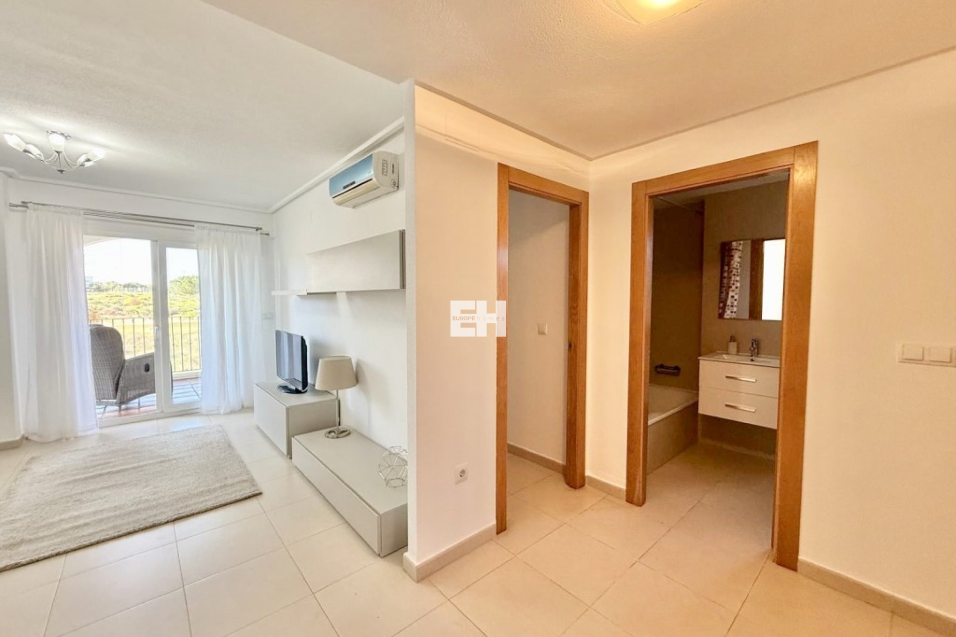 Nos complace presentar este precioso y luminoso apartamento esquinero en primera planta con preciosas vistas al campo de golf, ubicado en el fantástico complejo turístico Hacienda Riquelme Golf, con restaurante, cafetería y supermercado. A solo 5 minutos en coche del pueblo de Sucina, con una gran variedad de tiendas, bares y restaurantes.Al entrar al luminoso apartamento hay un gran salón-comedor con aire acondicionado, calefacción central de gas y puertas corredizas dobles que conducen a una gran terraza cubierta.La amplia terraza orientada al sur cuenta con cortinas de cristal, lo que permite su uso durante todo el año. Ofrece amplio espacio para sentarse y comer, y ofrece fantásticas vistas al campo de golf. Ideal para disfrutar de un café mientras se contempla el paisaje.La cocina totalmente equipada tiene una variedad de unidades de pared y base, y viene con horno, vitrocerámica y una variedad de electrodomésticos, así como un lavadero separado que alberga la lavadora y la caldera de gas.Dos dormitorios dobles cuentan con armarios empotrados, ventiladores de techo y calefacción central de gas. El dormitorio principal tiene puertas que dan a la terraza. El dormitorio de invitados tiene una ventana con vistas a los jardines comunitarios.El baño familiar es de gran tamaño y tiene una bañera con ducha, inodoro, bidet y tocador y se beneficia de una ventana que le da mucha luz natural.Esta propiedad sería una hermosa residencia permanente o una segunda residencia.Hay un espacio de estacionamiento subterráneo exclusivo con sala de almacenamiento privada a la que se accede por control remoto, así como un amplio estacionamiento en la calle.A pocos pasos de una de las 19 piscinas comunitarias del lugar y cerca de las instalaciones del lugar.El complejo cuenta con seguridad las 24 horas y está situado en un lugar ideal para explorar todo lo que la Costa Cálida tiene para ofrecer, incluidas las antiguas ciudades de Cartagena y Murcia.A sólo 15 minutos en coche de las fantásticas playas del Mar Menor y del Mediterráneo.El aeropuerto de Murcia está a sólo 20 minutos en coche.El aeropuerto de Alicante está a solo 55 minutos en coche.