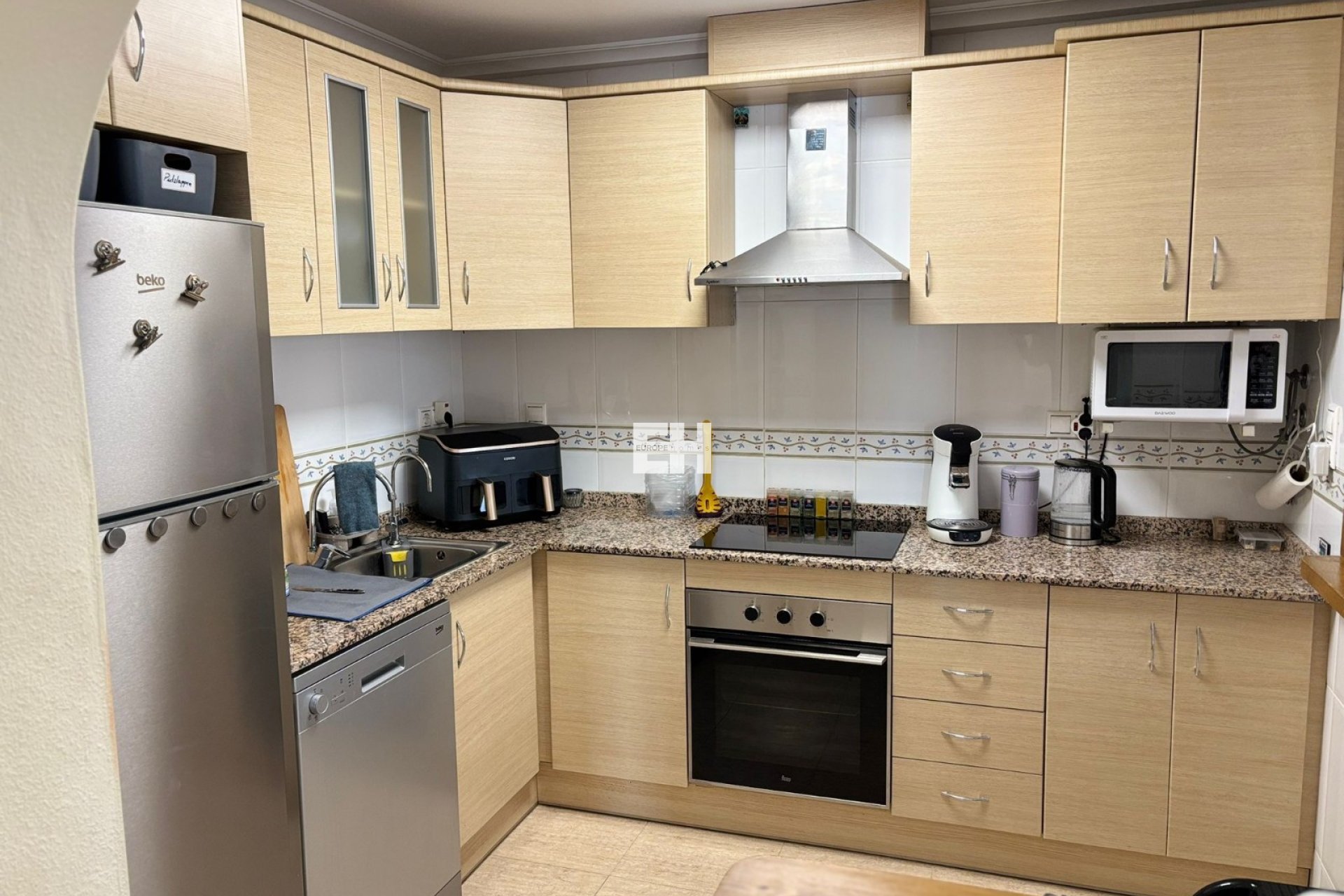 Die separate, voll ausgestattete Küche mit modernen Geräten bietet einen praktischen und benutzerfreundlichen Arbeitsbereich, ideal für Kochbegeisterte. Das geräumige und helle Wohn-/Esszimmer verfügt über einen Kaminofen, der im Winter für Wärme und eine gemütliche Atmosphäre sorgt.