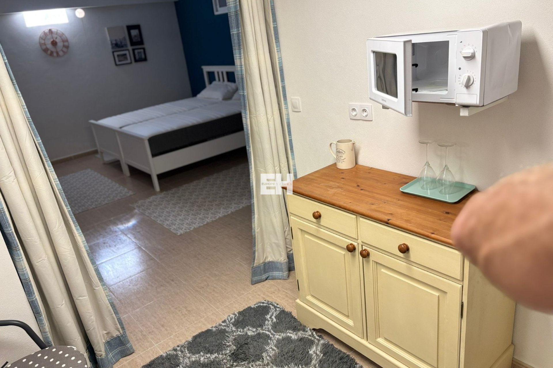 Anschließend können Sie ins Untergeschoss hinuntergehen, das über einen separaten Eingang verfügt. Dort finden Sie einen großen Abstellraum sowie eine weitere Wohnung mit eigenem Wohnzimmer, Küche, Schlafzimmer und Badezimmer.