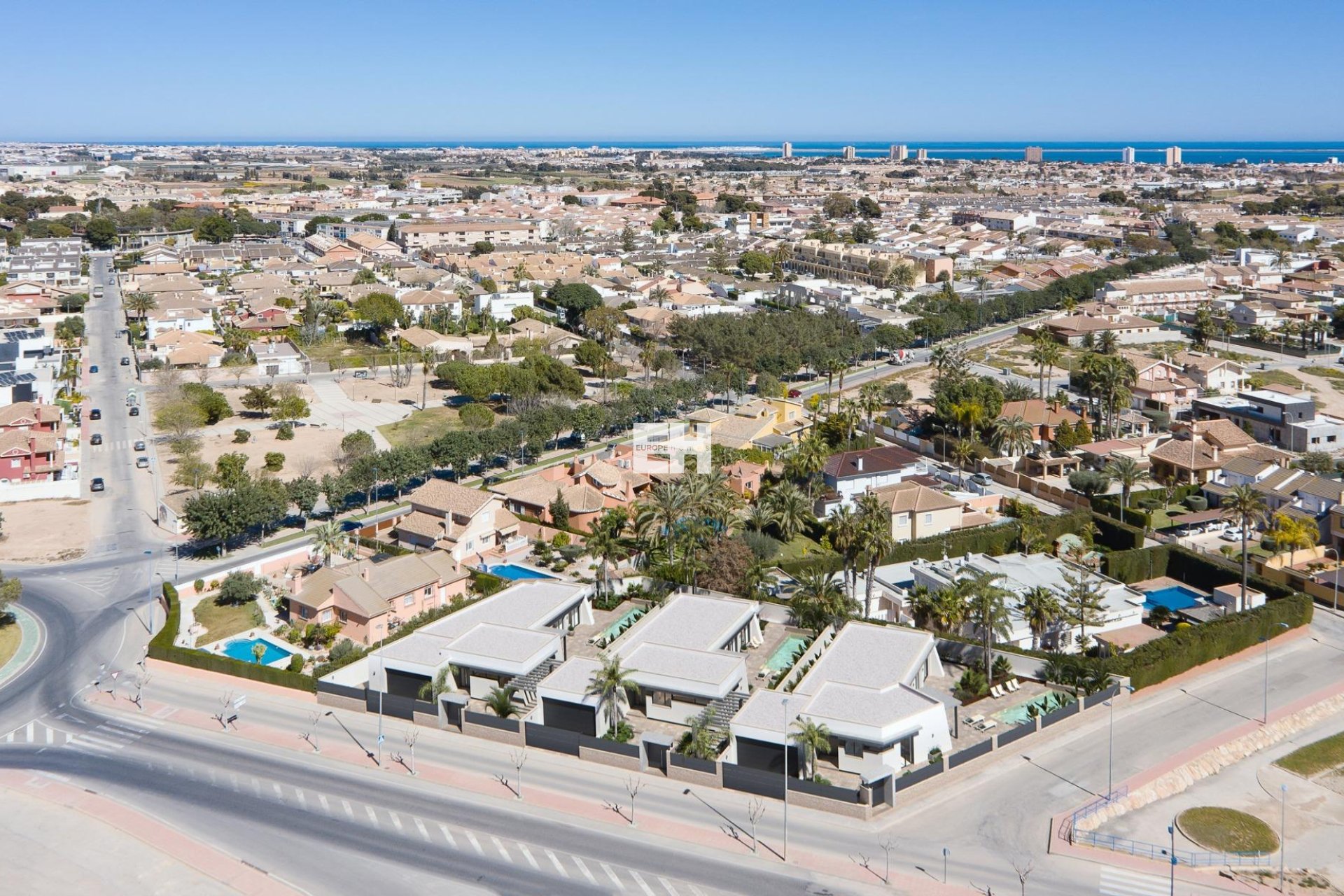 Three exclusive villas in a residential area in San Javier with 600 m2 of plot and 217 m2 of built area on one floor, private pool and large garden areas.