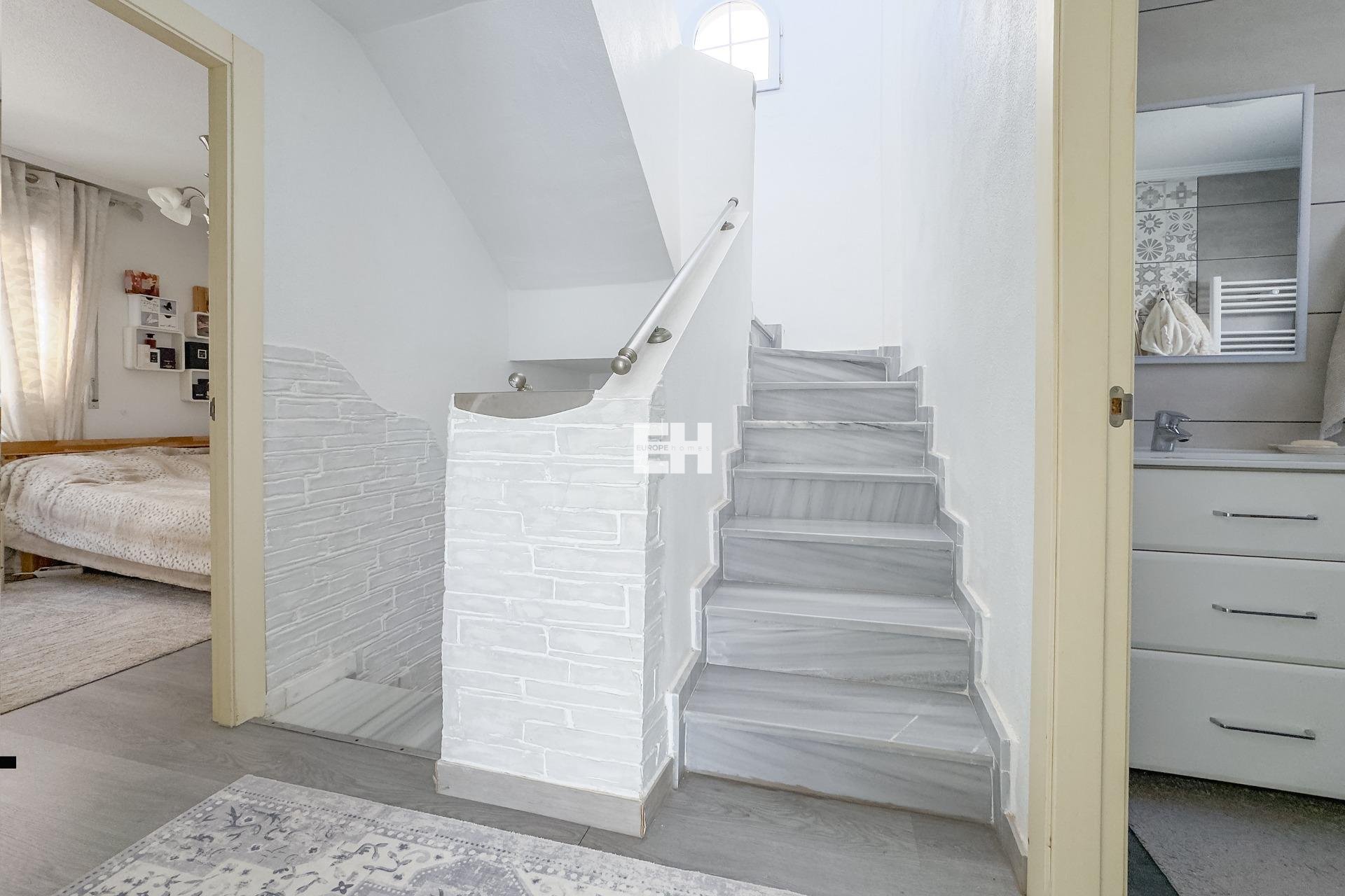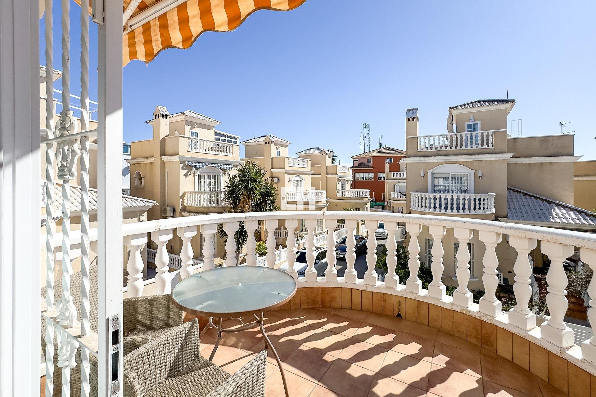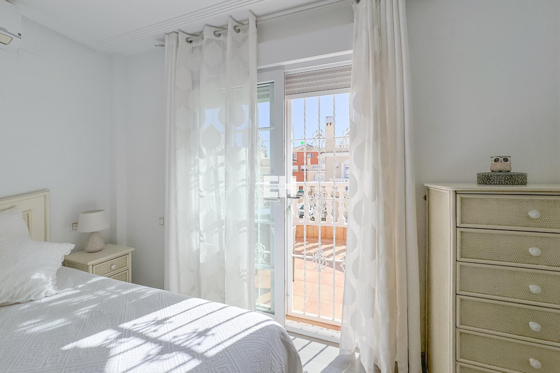 WONDERFUL DETACHED VILLA (approx. 105 m² + TERRACES) WITH GARDEN, TERRACES FACING SOUTHEAST, AND LARGE COMMUNAL POOL! Spacious villa, modernly renovated, and strategically located in Los Almendros between Torrevieja and La Zenia, close to both the AP7 and supermarkets, schools, and other services. In just over 10 minutes by car you reach the centre of Torrevieja, and in just over 5 minutes both the large shopping centre la Zenia Boulevard and the beautiful beaches of Punta Prima. A wonderful house to live in all year round! KEY FEATURES: –Well-maintained gated community with large pool area. –Garden/terrace (approx. 80 m²) with barbecue. –Ground floor: Entrance, large living room with gas fireplace, large independent kitchen (fully equipped), 1 WC, and 1 bedroom (now used as an office). –Floor 1: 1 bathroom (with shower) and 2 large bedrooms, one of which has access to the large balcony facing southeast. –Floor 2: 1 large bedroom, laundry room, and a large terrace, also facing southeast. –Very well maintained – recently renovated and everything still in perfect condition, fully furnished and ready to move into immediately! OTHER ADVANTAGES: –Parking on private street within the community. –Heating (fireplace and radiators) and hot water with natural gas. –Modern AC (air source heat pumps – 5 units) on all three floors. –Close to several supermarkets (Aldi 400 m, Consum 700 m) –Schools within walking distance – 1.5 km to CEIP Colegio Público Playas de Orihuela. –Good public transportation – 700 m to the bus stop (Torrevieja city buses - Line E). –By car about 10 min (6 km) to Torrevieja city centre and about 5 min (3 km) to La Zenia and to the beaches of Punta Prima. –Several golf courses within about 15 min by car. –Community fees: about €29/month. The house was originally built in 2002 but has been recently renovated. The bathrooms are in a modern style, and in the fully equipped kitchen you have both modern appliances, drinking water filter, and of course a modern gas hob, since the house is connected to the natural gas network. Both heating (fireplace and radiators) and hot water are via natural gas, which is normally the cheapest energy source (installation inspected in 2025). However, you also have modern AC (air source heat pumps) throughout the house. And, even though the house is not renovated this year, everything is still in perfect condition, fully furnished and ready to move into immediately! The Los Almendros area is formally located in Orihuela Costa, but is closely intertwined with Los Balcones and Torrevieja. It is a quiet residential area with villas and townhouses, very popular with families with children, and where a lot of new construction has been built in recent years. With only 45 minutes to Alicante airport, it is also attractive for those who do not live there all year round, not least for golf enthusiasts, as there are many nice golf courses nearby. And with just over 10 minutes to both Torrevieja, the third largest city in the Alicante province and with more than 110,000 inhabitants, and to all the popular areas of Orihuela Costa (La Zenia, Playa Flamenca, Cabo Roig etc.), it is of course easy to both commute to work and reach the wonderful beaches along the coast. Don't miss out on this spacious and very well-kept villa. A wonderful house to live in all year round! Contact us today for a viewing!
