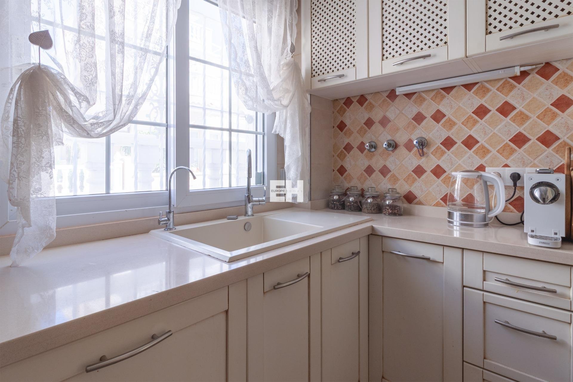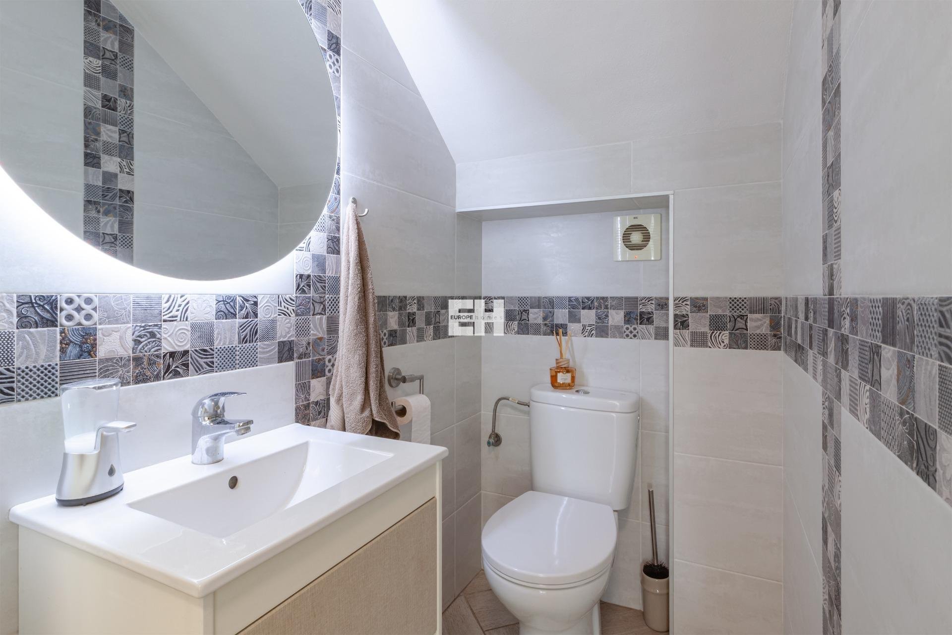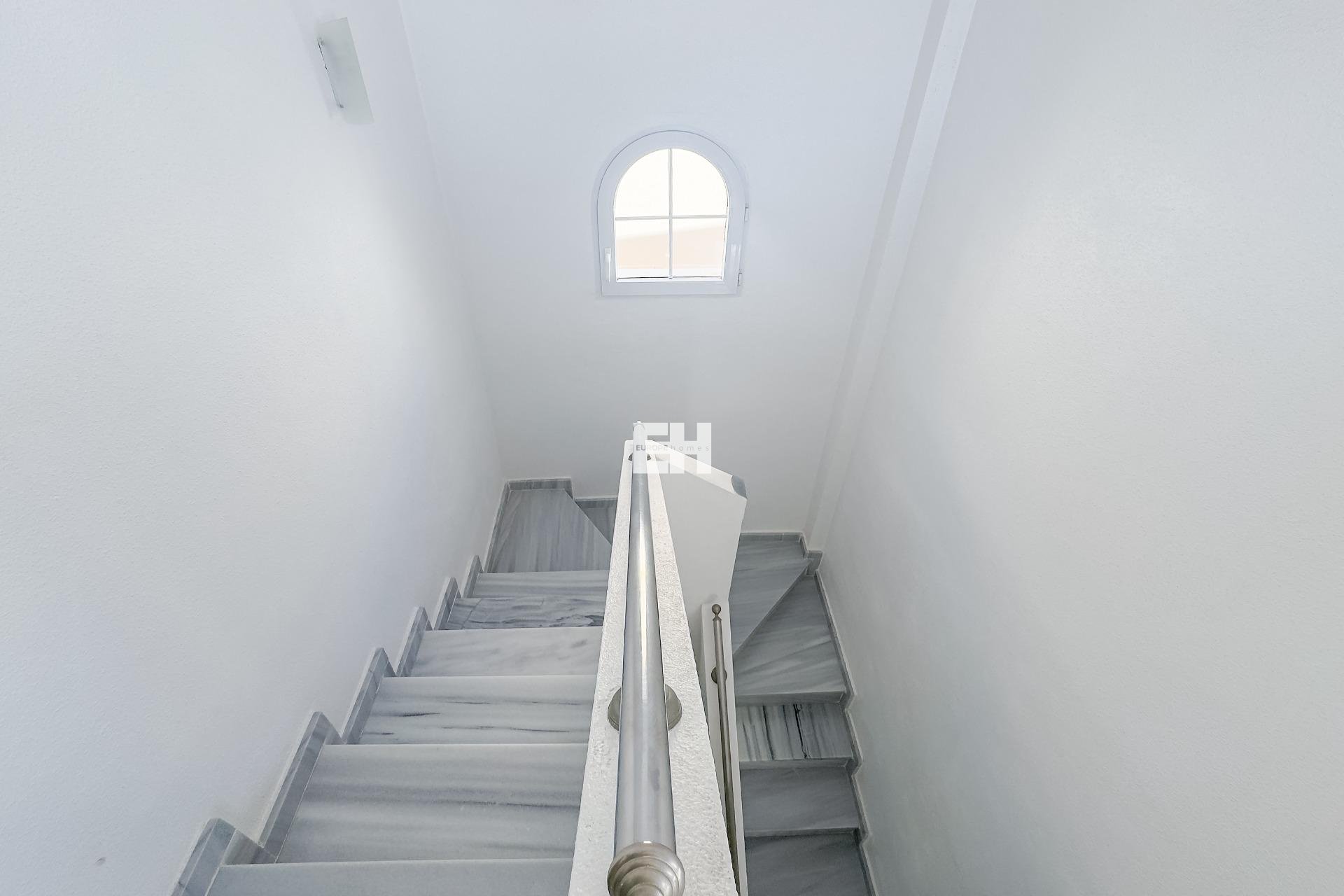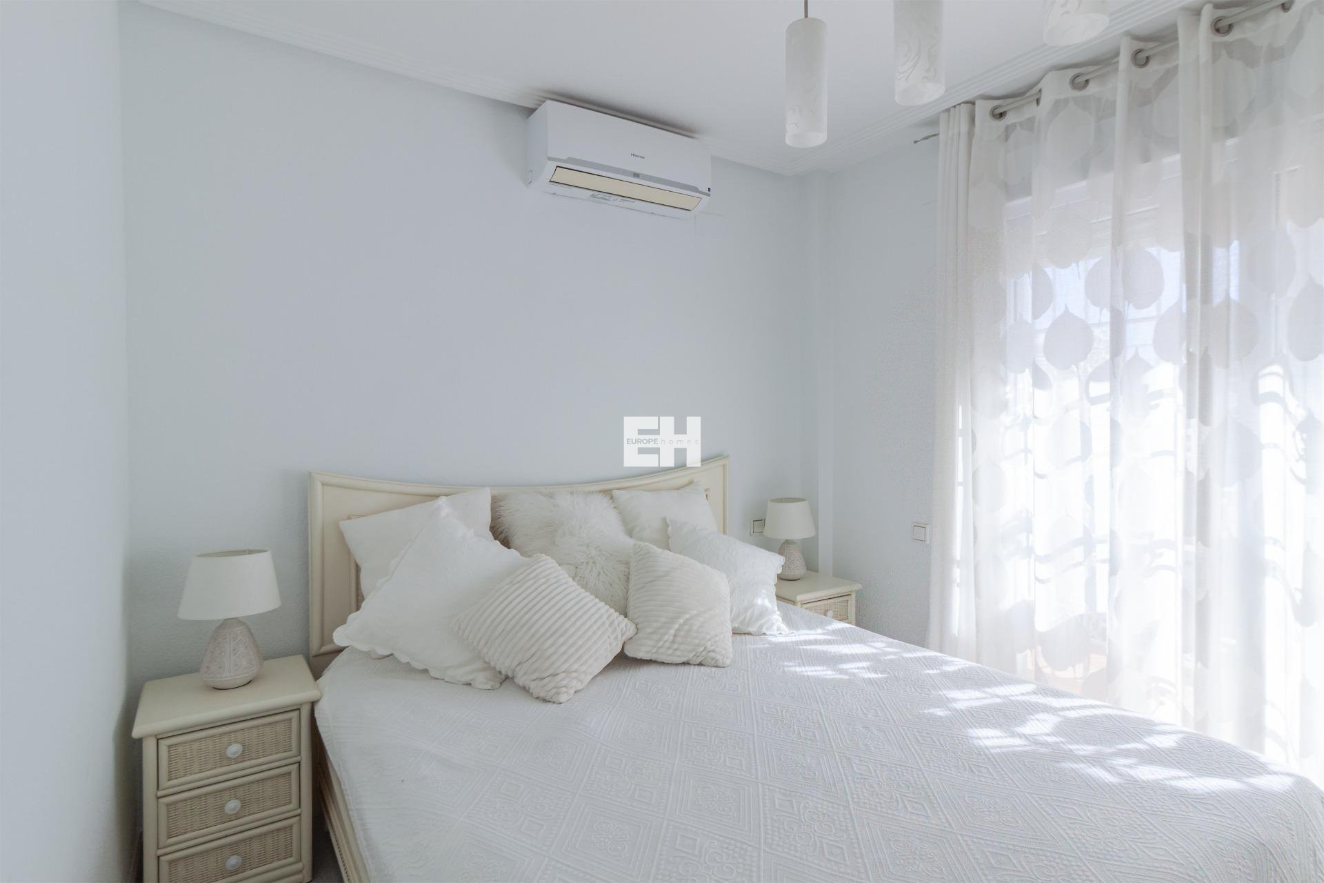 WONDERFUL DETACHED VILLA (approx. 105 m² + TERRACES) WITH GARDEN, TERRACES FACING SOUTHEAST, AND LARGE COMMUNAL POOL! Spacious villa, modernly renovated, and strategically located in Los Almendros between Torrevieja and La Zenia, close to both the AP7 and supermarkets, schools, and other services. In just over 10 minutes by car you reach the centre of Torrevieja, and in just over 5 minutes both the large shopping centre la Zenia Boulevard and the beautiful beaches of Punta Prima. A wonderful house to live in all year round! KEY FEATURES: –Well-maintained gated community with large pool area. –Garden/terrace (approx. 80 m²) with barbecue. –Ground floor: Entrance, large living room with gas fireplace, large independent kitchen (fully equipped), 1 WC, and 1 bedroom (now used as an office). –Floor 1: 1 bathroom (with shower) and 2 large bedrooms, one of which has access to the large balcony facing southeast. –Floor 2: 1 large bedroom, laundry room, and a large terrace, also facing southeast. –Very well maintained – recently renovated and everything still in perfect condition, fully furnished and ready to move into immediately! OTHER ADVANTAGES: –Parking on private street within the community. –Heating (fireplace and radiators) and hot water with natural gas. –Modern AC (air source heat pumps – 5 units) on all three floors. –Close to several supermarkets (Aldi 400 m, Consum 700 m) –Schools within walking distance – 1.5 km to CEIP Colegio Público Playas de Orihuela. –Good public transportation – 700 m to the bus stop (Torrevieja city buses - Line E). –By car about 10 min (6 km) to Torrevieja city centre and about 5 min (3 km) to La Zenia and to the beaches of Punta Prima. –Several golf courses within about 15 min by car. –Community fees: about €29/month. The house was originally built in 2002 but has been recently renovated. The bathrooms are in a modern style, and in the fully equipped kitchen you have both modern appliances, drinking water filter, and of course a modern gas hob, since the house is connected to the natural gas network. Both heating (fireplace and radiators) and hot water are via natural gas, which is normally the cheapest energy source (installation inspected in 2025). However, you also have modern AC (air source heat pumps) throughout the house. And, even though the house is not renovated this year, everything is still in perfect condition, fully furnished and ready to move into immediately! The Los Almendros area is formally located in Orihuela Costa, but is closely intertwined with Los Balcones and Torrevieja. It is a quiet residential area with villas and townhouses, very popular with families with children, and where a lot of new construction has been built in recent years. With only 45 minutes to Alicante airport, it is also attractive for those who do not live there all year round, not least for golf enthusiasts, as there are many nice golf courses nearby. And with just over 10 minutes to both Torrevieja, the third largest city in the Alicante province and with more than 110,000 inhabitants, and to all the popular areas of Orihuela Costa (La Zenia, Playa Flamenca, Cabo Roig etc.), it is of course easy to both commute to work and reach the wonderful beaches along the coast. Don't miss out on this spacious and very well-kept villa. A wonderful house to live in all year round! Contact us today for a viewing!