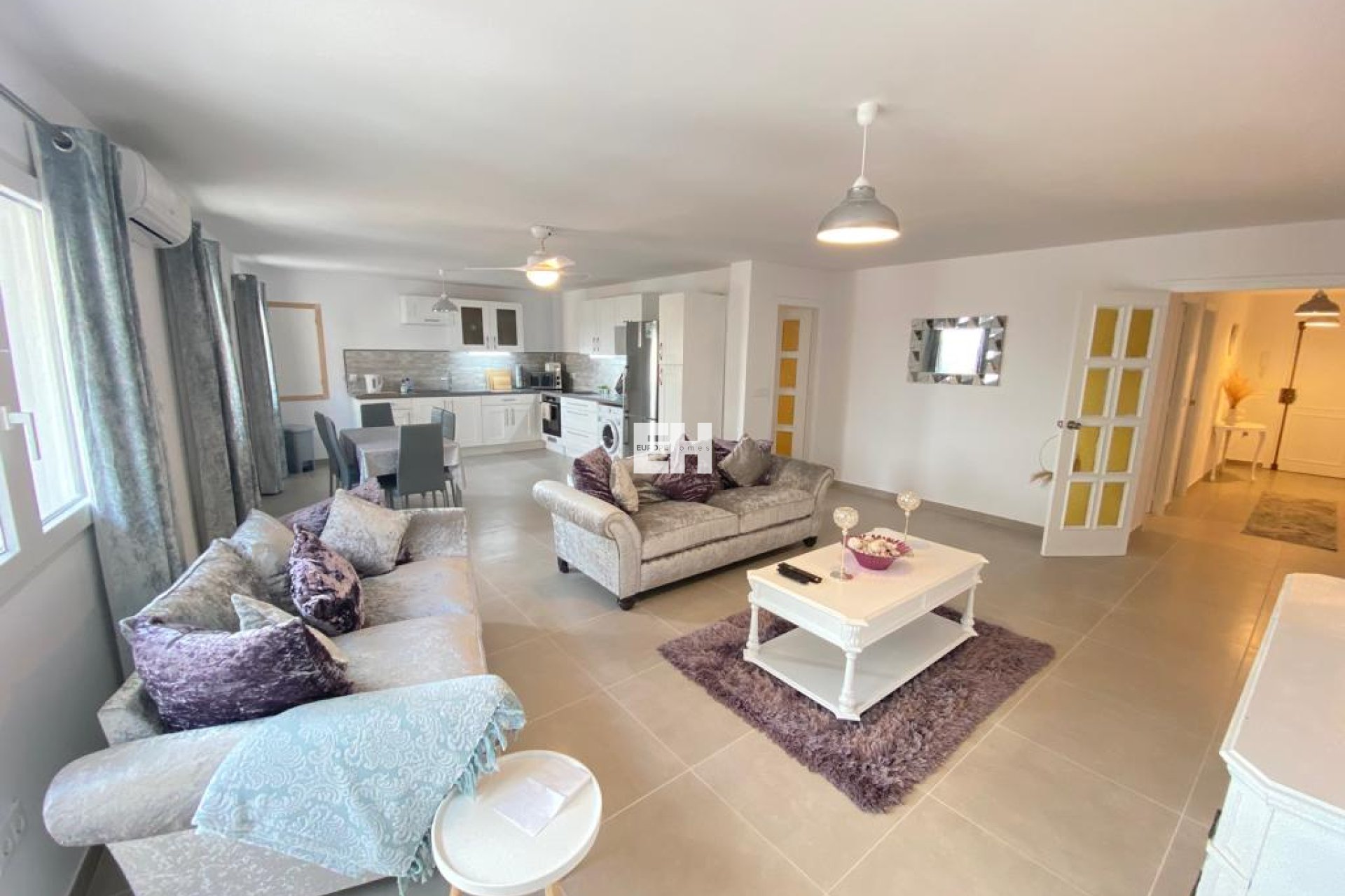 Appartement de style contemporain entièrement rénové au premier étage avec ascenseur dans la zone urbaine de Pueblo à Jávea/Xàbia, à distance de marche de tous les commerces et services essentiels de la région. Ce bel appartement se compose d’un hall, d’un salon avec une sortie extérieure sur un balcon, d’une salle à manger avec une cuisine ouverte entièrement équipée, de trois chambres doubles (master en suite + balcon), de deux salles de bains et d’un WC invités. Il est équipé de la climatisation et d’un ventilateur de plafond dans le salon et la chambre principale, ainsi que d’une place de parking. L’appartement a été entièrement rénové, y compris la plomberie. Fabuleux appartement avec un bon revenu locatif prouvé ou pour vivre toute l’année. Il est à vendre entièrement meublé.