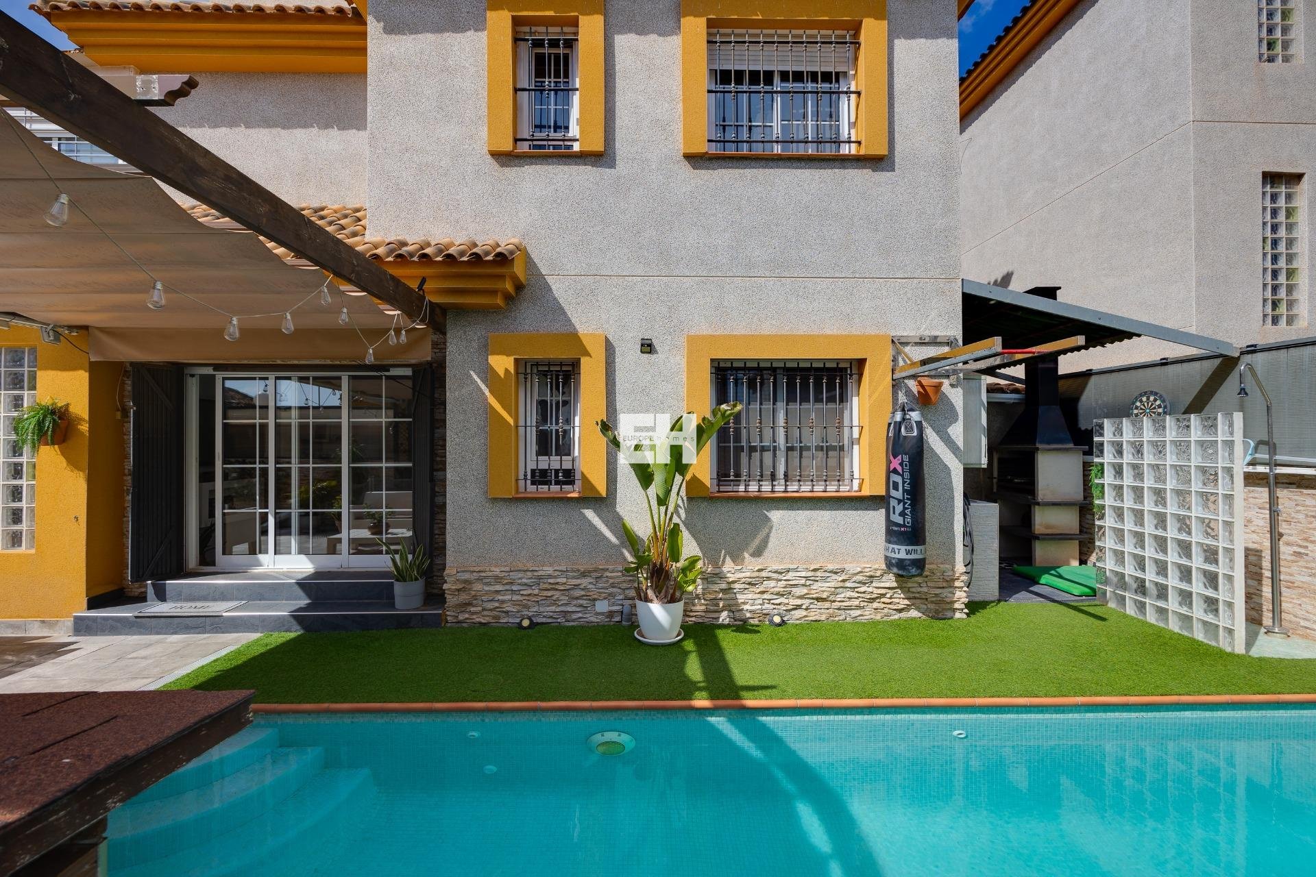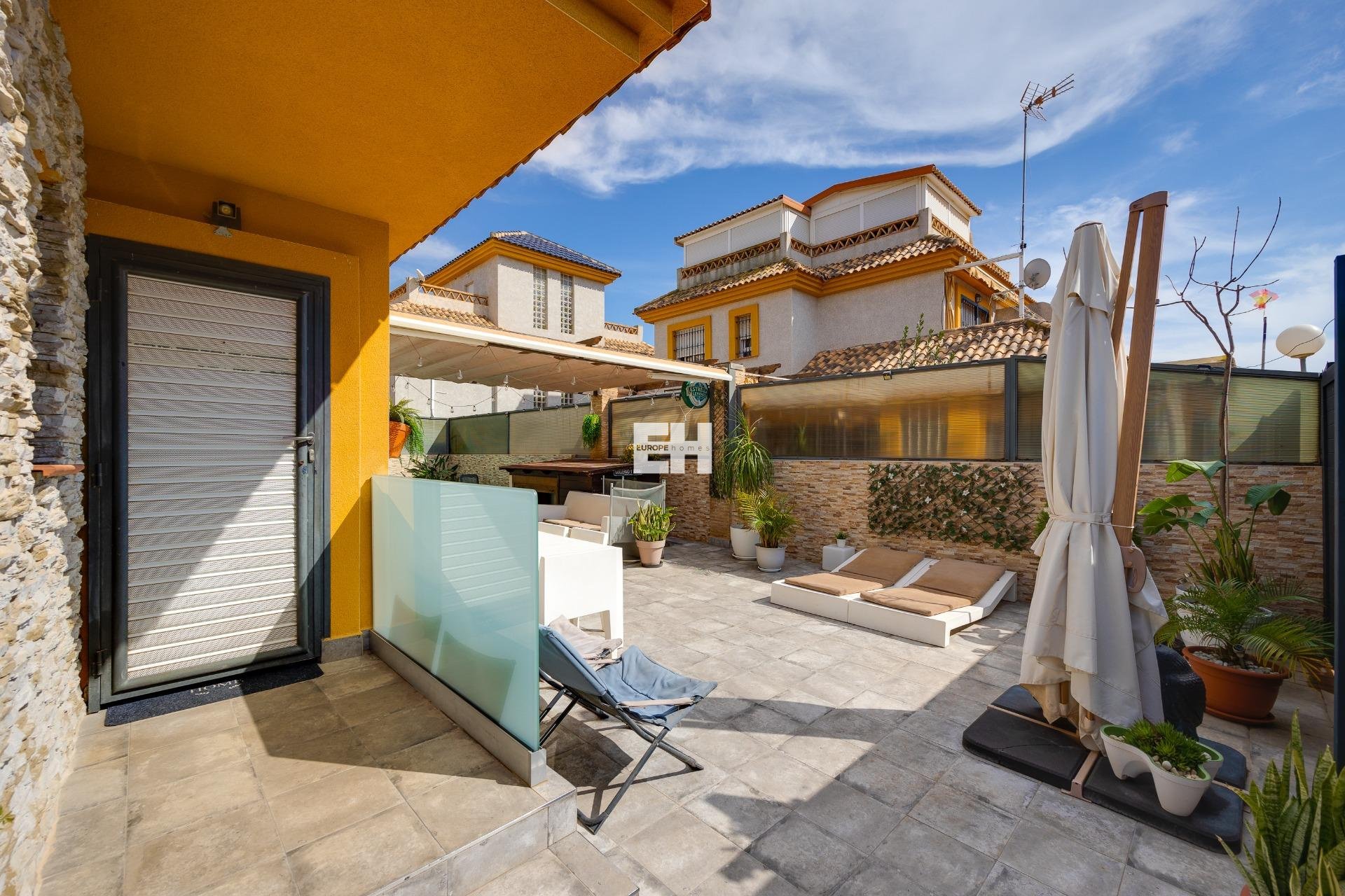 Découvrez cette charmante villa individuelle située à La Herrada, à Los Montesinos, un quartier résidentiel calme idéal pour ceux qui recherchent qualité de vie, intimité et proximité de tous les services. Elle se trouve également à seulement 10–15 minutes en voiture des plages de Torrevieja et du centre-ville. La propriété se distingue par son excellent état de conservation et par le soin apporté à chaque détail, ce qui en fait une maison prête à être appréciée dès le premier jour. En entrant dans la propriété, vous serez accueilli par un magnifique jardin privé avec piscine, l’espace idéal pour profiter du climat méditerranéen. La piscine dispose de tabourets stratégiquement placés créant un bar original directement dans l’eau, parfait pour partager des moments uniques. L’extérieur comprend également un espace barbecue et un pratique débarras. La villa est répartie sur trois étages parfaitement agencés. Au rez-de-chaussée, vous trouverez un salon-salle à manger spacieux et lumineux, très chaleureux et avec accès direct au jardin, créant une parfaite connexion entre l’intérieur et l’extérieur. Elle dispose également d’une cuisine indépendante entièrement équipée, d’une chambre double et d’une salle de bain complète avec douche à l’italienne. Au premier étage se trouvent deux chambres, dont une particulièrement spacieuse avec un espace bureau pratique. À cet étage se trouve également une salle de bain complète avec douche à l’italienne. Au dernier étage, vous trouverez un espace buanderie et l’accès à un spectaculaire solarium privé avec une vue panoramique dégagée sur la Laguna Rosa, un lieu privilégié pour profiter des couchers de soleil et de l’environnement naturel. La maison dispose également de la climatisation, du chauffage et est vendue entièrement meublée et équipée, prête à emménager immédiatement. Une propriété unique qui combine confort, intimité et emplacement privilégié. CONTACTEZ-NOUS !