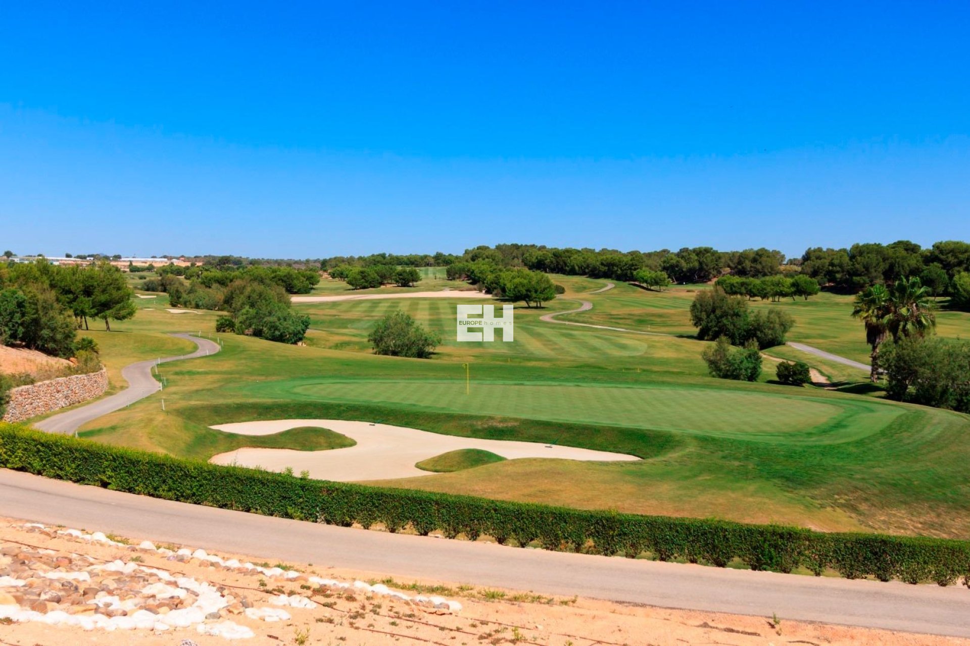 El campo de golf de 18 hoyos se encuentra cerca de hermosas playas de aguas cristalinas y está perfectamente comunicado por carretera con las ciudades de Alicante y Murcia, así como los aeropuertos de Corvera (Murcia) y Alicante se encuentran a 40 y 55 minutos respectivamente.
