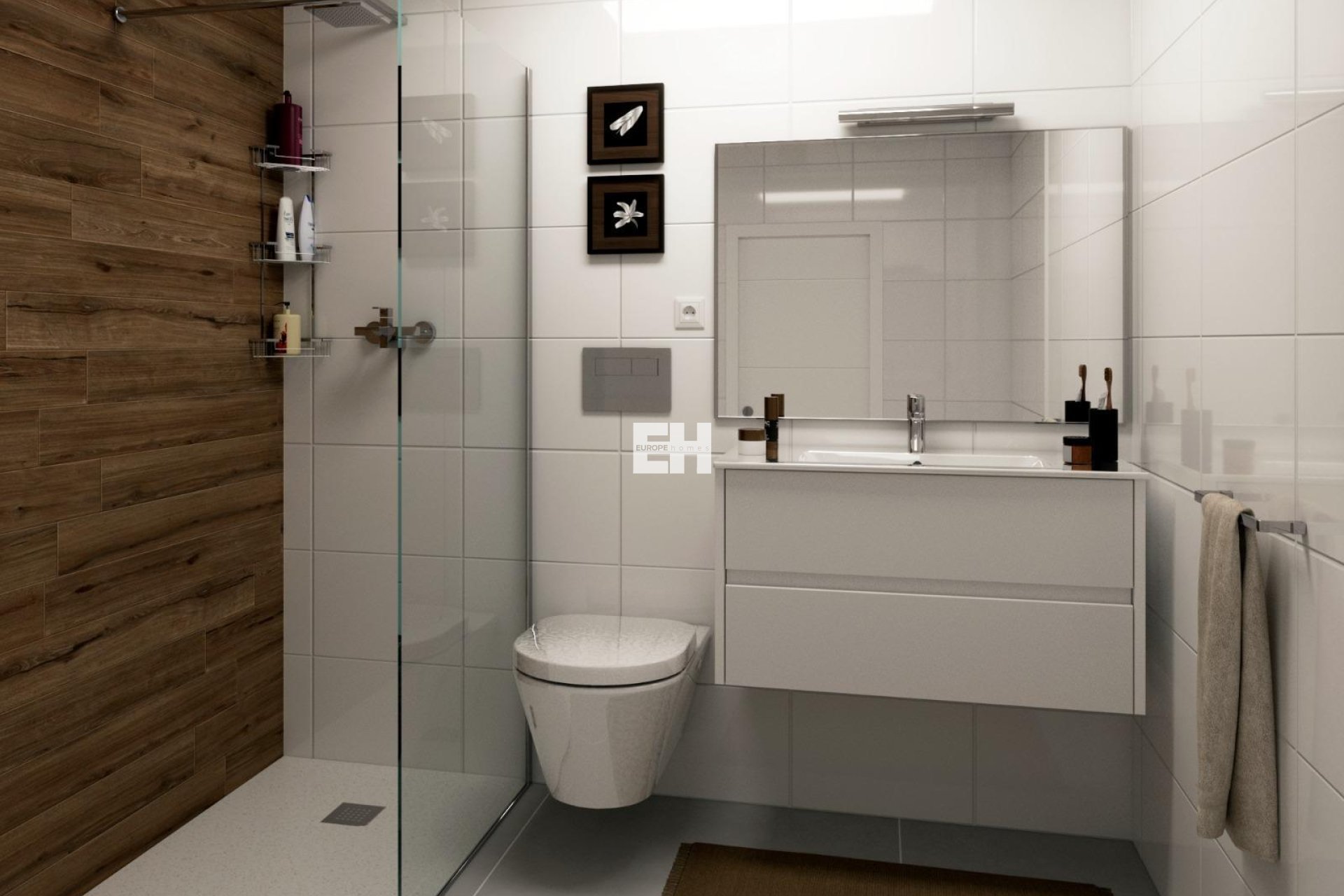 Baños completos con muebles, espejo y mampara de ducha
