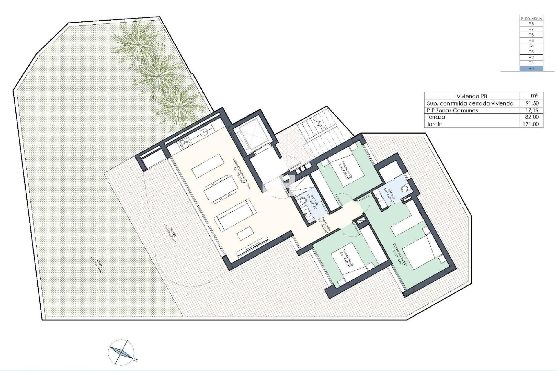 Cada apartamento cuenta con 3 dormitorios y 2 baños, además de amplios espacios exteriores: