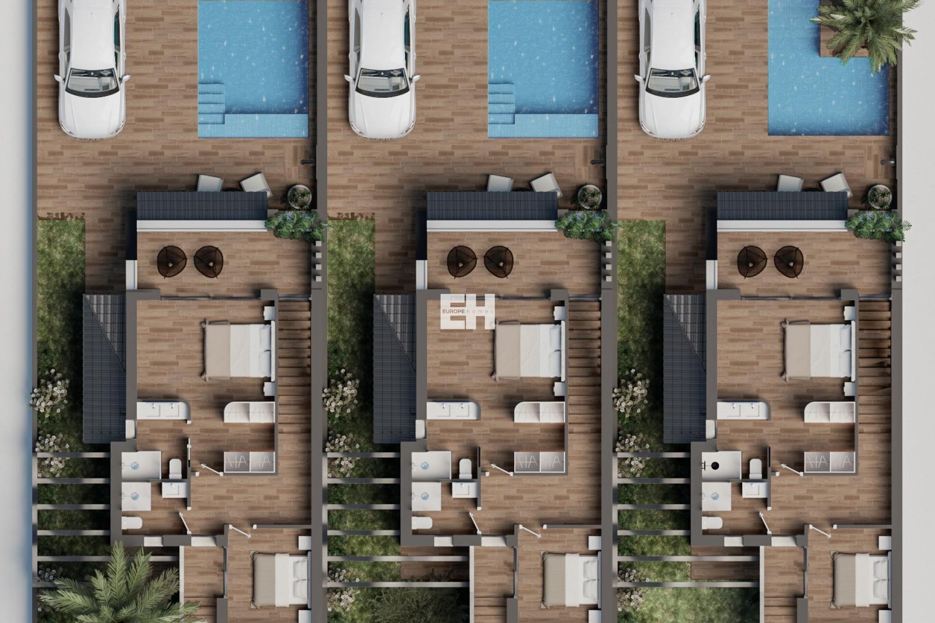 Cada villa está situada en una parcela privada de aproximadamente 200 metros cuadrados, lo que proporciona un amplio espacio para la vida al aire libre y la relajación. La propiedad incluye una piscina privada, perfecta para disfrutar de los cálidos días mediterráneos, y una zona de aparcamiento designada. Un amplio solárium privado ofrece un hermoso espacio para tomar el sol, entretenerse o simplemente disfrutar de la tranquilidad del entorno. Estas villas ofrecen un estilo de vida de alta calidad con servicios de primera calidad y comodidades modernas en una de las zonas costeras más deseadas de España.
