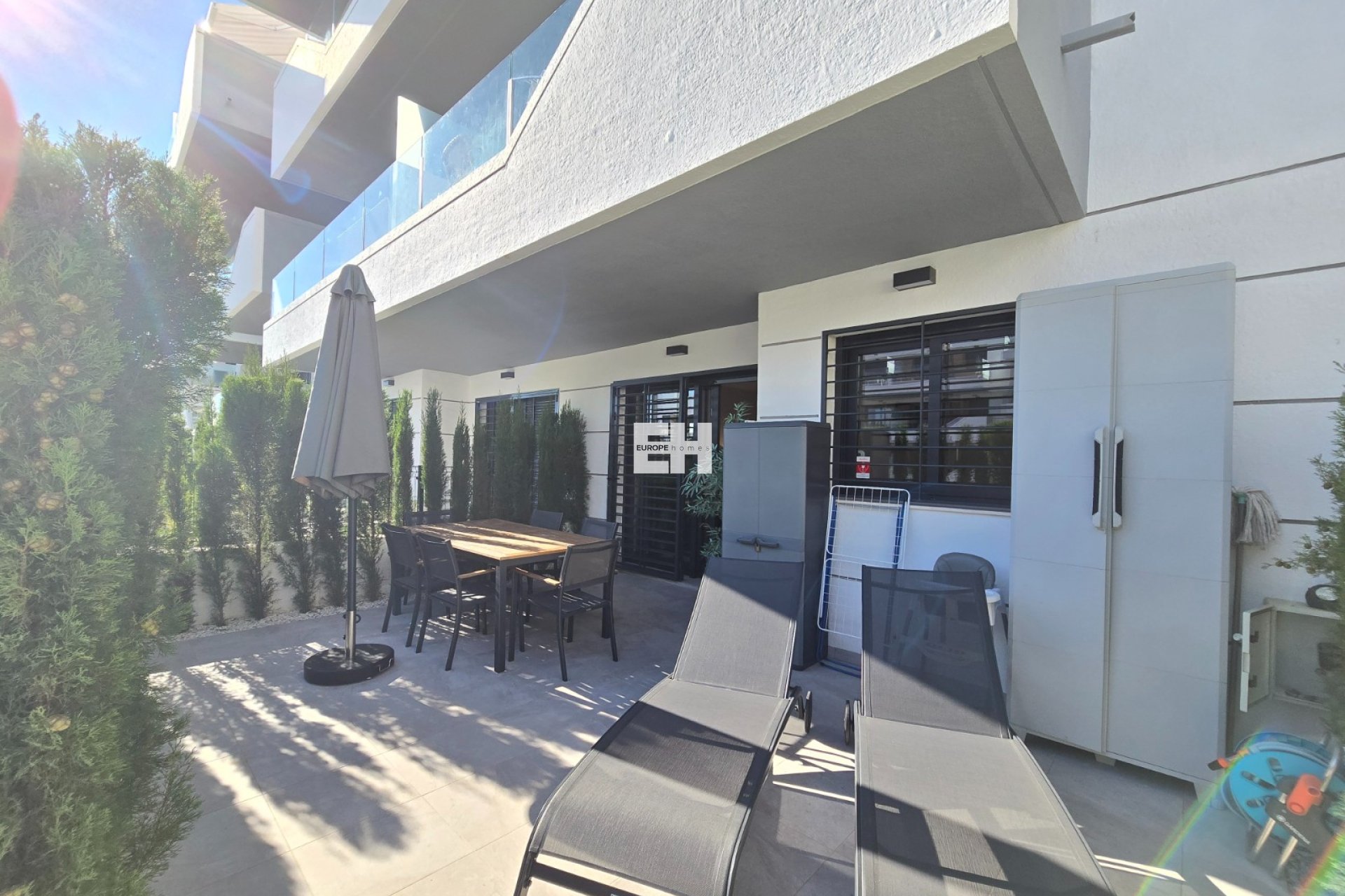 La vivienda cuenta con 2 dormitorios y 2 modernos cuartos de baño, uno de ellos en suite. La cocina abierta está totalmente equipada y se integra a la perfección en el luminoso salón, con acceso directo a la amplia terraza. Desde aquí se disfruta de acceso directo al bonito jardín comunitario, con piscina y jacuzzi, ideal para relajarse y disfrutar del clima mediterráneo.