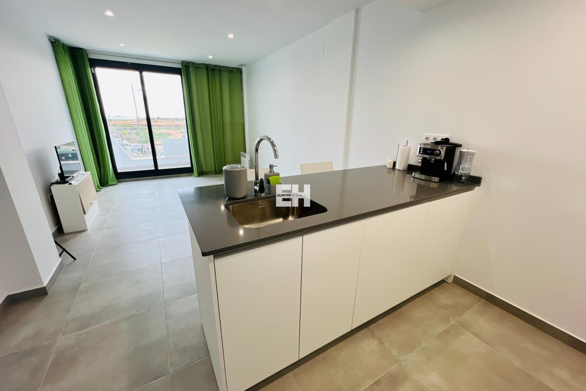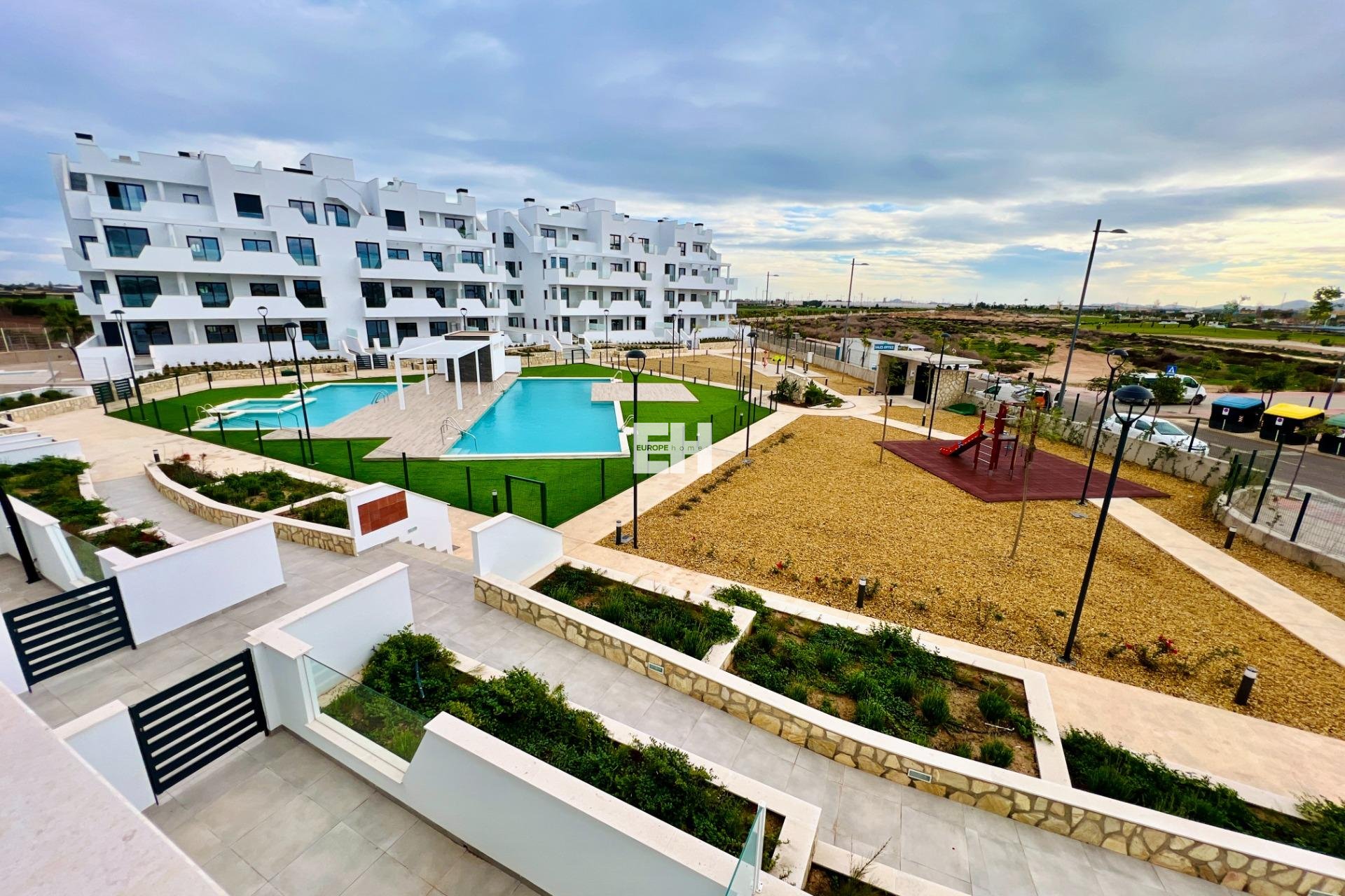 ¡Descubre tu nuevo hogar en este espectacular apartamento de obra nueva, listo para entrar a vivir en 2024! Situado en una tranquila zona residencial, este piso de 78 m² en la primera planta te ofrece todo lo que necesitas para disfrutar de una vida cómoda y relajada. Con dos dormitorios y dos baños completos, este espacio es ideal para parejas o pequeñas familias. La orientación sur garantiza una excelente luminosidad durante todo el día, mientras que las vistas despejadas te permitirán disfrutar de la serenidad del entorno con una gran terraza. El complejo cuenta con una impresionante piscina comunitaria y una playa artificial, perfectas para refrescarse en los días calurosos. Además, si eres amante del golf, estarás encantado de saber que hay varios campos de golf cerca. Las playas están a solo 5 km, ofreciéndole la posibilidad de disfrutar del mar en pocos minutos. Este apartamento incluye plaza de garaje y trastero, además de armarios empotrados para maximizar el espacio de almacenamiento. Construido con materiales de calidad, el piso terminado esta año 2024 cuenta con calefacción y aire acondicionado preinstalado para tu máximo confort. El edificio dispone de ascensor y está adaptado para personas con movilidad reducida, asegurando accesibilidad para todos. No pierdas la oportunidad de vivir en este enclave privilegiado que combina tranquilidad y comodidad. ¡Ven a visitarlo y enamórate de tu futuro hogar!