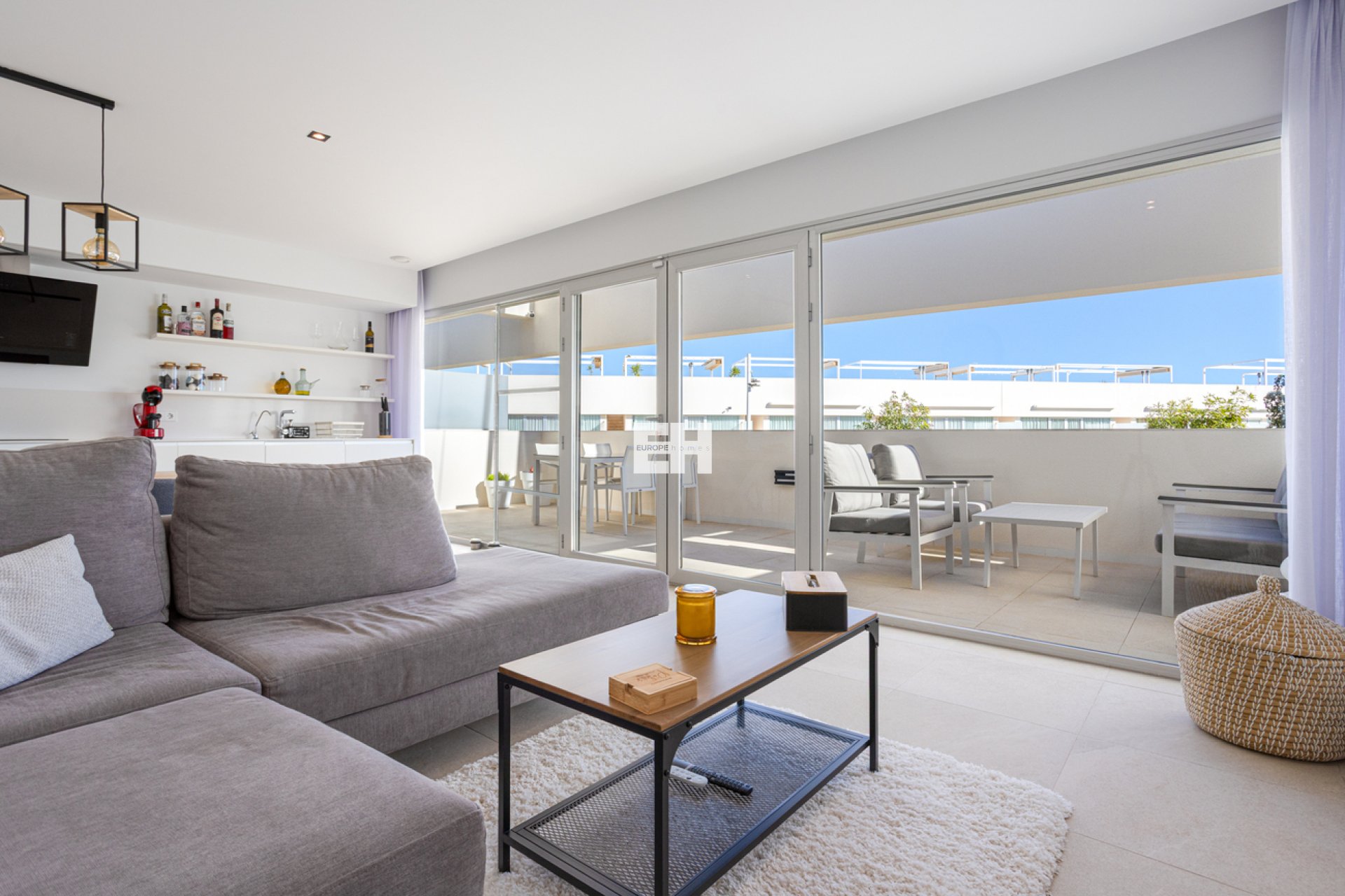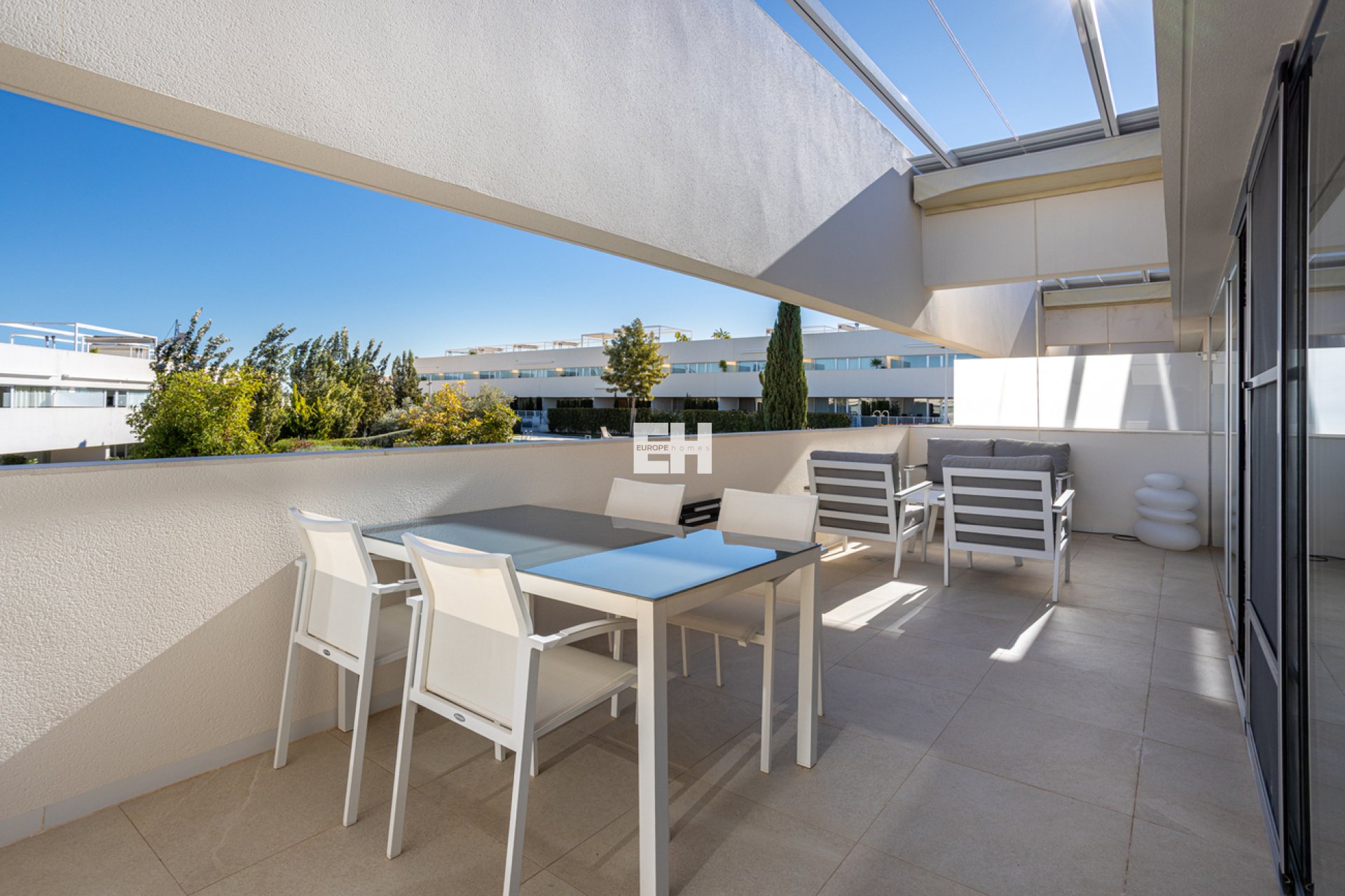 Apartamento moderno y amueblado con solárium único y vistas panorámicas a la laguna – Los BalconesEste elegante y listo para entrar a vivir apartamento en Los Balcones combina confort moderno con una excelente vida al aire libre. Con dos terrazas y un amplio solárium de 74 m² equipado con cocina exterior y pérgola, y un total de 188 m² de superficie útil, esta vivienda ofrece un estilo de vida mediterráneo inigualable. La urbanización, bellamente ajardinada y con una amplia piscina comunitaria, completa este atractivo conjunto.Vivir en Los BalconesLos Balcones (Torrevieja) es una zona muy apreciada por quienes buscan tranquilidad, comodidad y un entorno natural. La residencia se encuentra en un entorno verde con árboles maduros, senderos bien cuidados y una piscina acogedora. Desde el apartamento se disfruta de vistas panorámicas a la laguna salada de Torrevieja, uno de los paisajes más emblemáticos de la Costa Blanca.Distribución y confortSituado en la primera planta, el apartamento ofrece un interior moderno y completamente amueblado de 84 m², complementado por amplias terrazas y un generoso solárium en la azotea.Totalmente amueblado y decorado con buen gustoInterior moderno con acabados de alta calidad3 dormitorios con aire acondicionado2 bañosTerraza delantera de 21 m² y terraza trasera de 9 m²Solárium de 74 m² con cocina exterior, pérgola y vistas impresionantesSistema domótico para mayor confortAlarma, trastero y plaza de aparcamiento privadaLa vivienda se siente luminosa, aireada y refinada — ideal como segunda residencia, inversión para alquiler o vivienda permanente.Vida exterior y vistasEl solárium es, sin duda, el punto más destacado: un espacio perfecto para relajarse, cocinar, recibir invitados o simplemente disfrutar del sol a cualquier hora del día. La cocina exterior y la pérgola hacen de esta azotea un espacio muy práctico y versátil. Las terrazas delantera y trasera ofrecen zonas adicionales para disfrutar al aire libre.Las vistas a la laguna salada aportan una sensación de paz única y un espectacular juego de colores al amanecer y al atardecer.Ubicación y alrededoresEn las inmediaciones se encuentran supermercados, restaurantes, instalaciones deportivas y el hospital de Torrevieja. Las playas de Torrevieja y Orihuela Costa están a pocos minutos en coche, al igual que el popular centro comercial La Zenia Boulevard. Una ubicación tranquila, segura y muy práctica — ideal para familias, parejas o inversores.Detalles clave188 m² de superficie total84 m² de superficie interior74 m² de solárium con pérgola y cocina exterior21 m² de terraza delantera9 m² de terraza trasera3 dormitorios, 2 bañosAmueblado, domótica, aire acondicionado, alarmaPlaza de aparcamiento y trasteroGran piscina comunitariaVistas panorámicas a la laguna salada